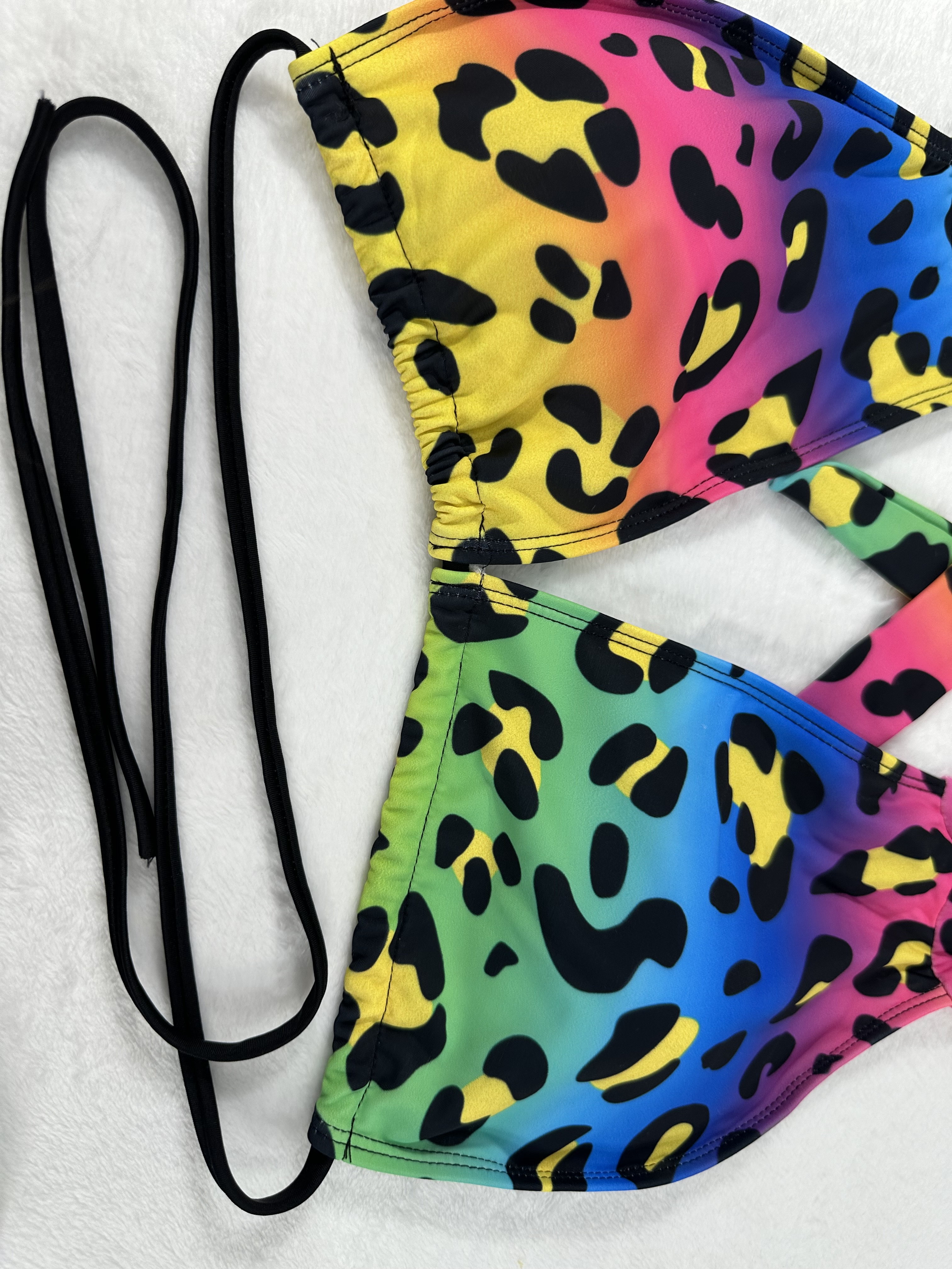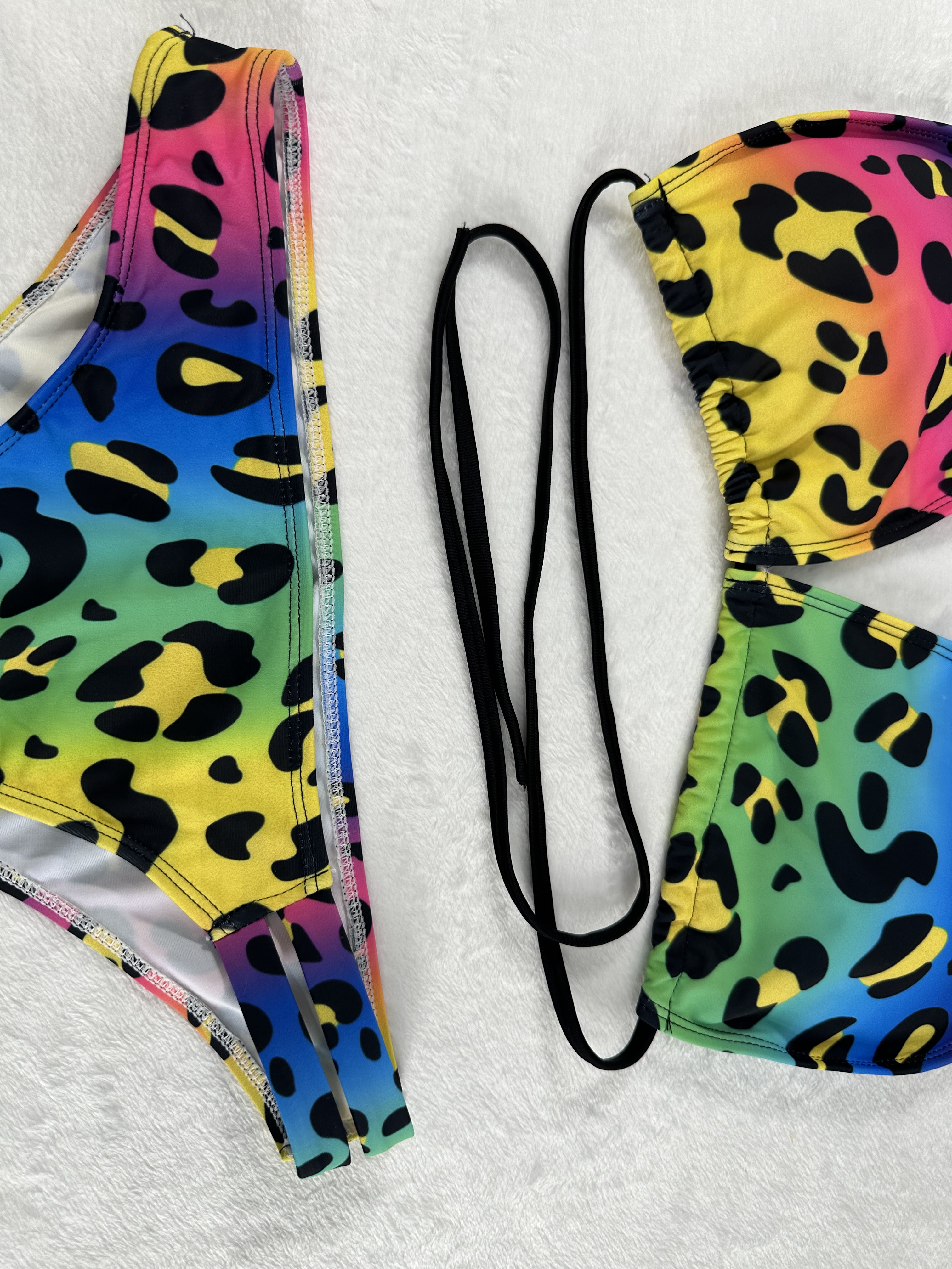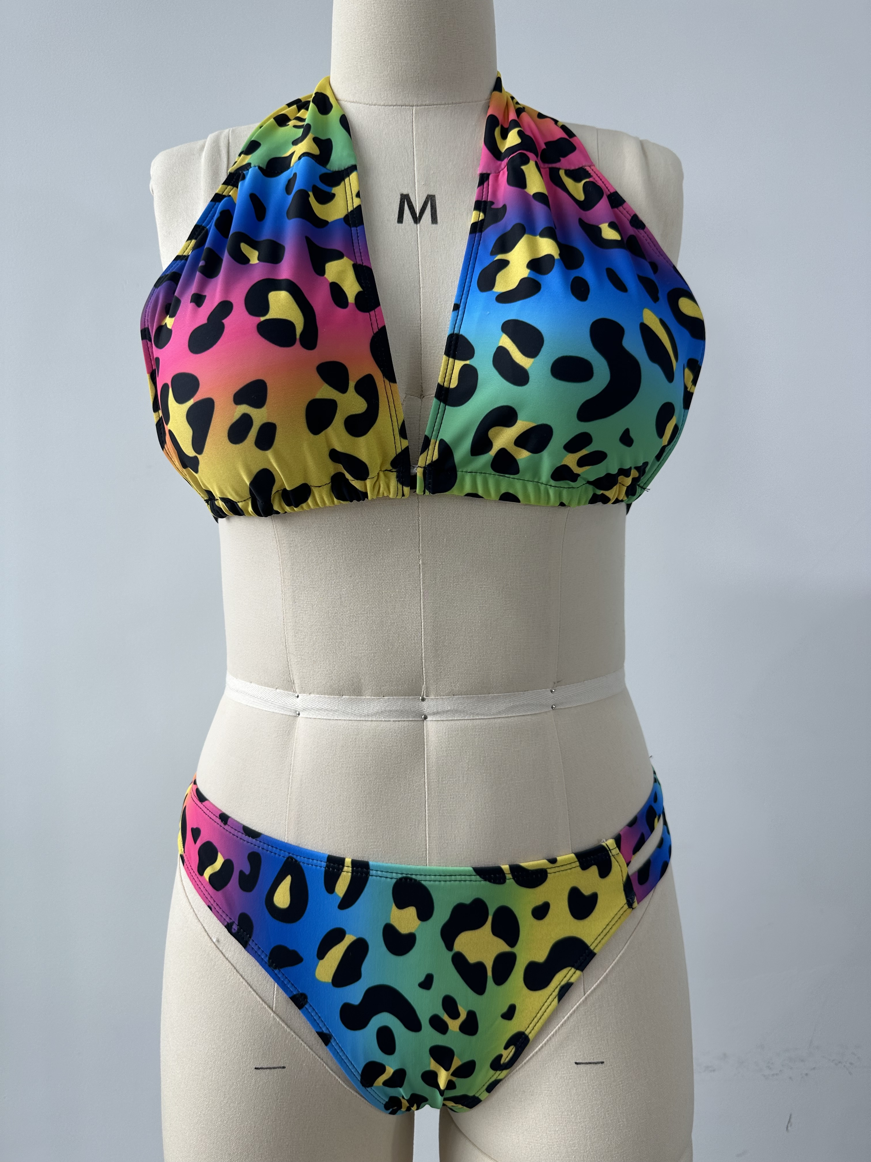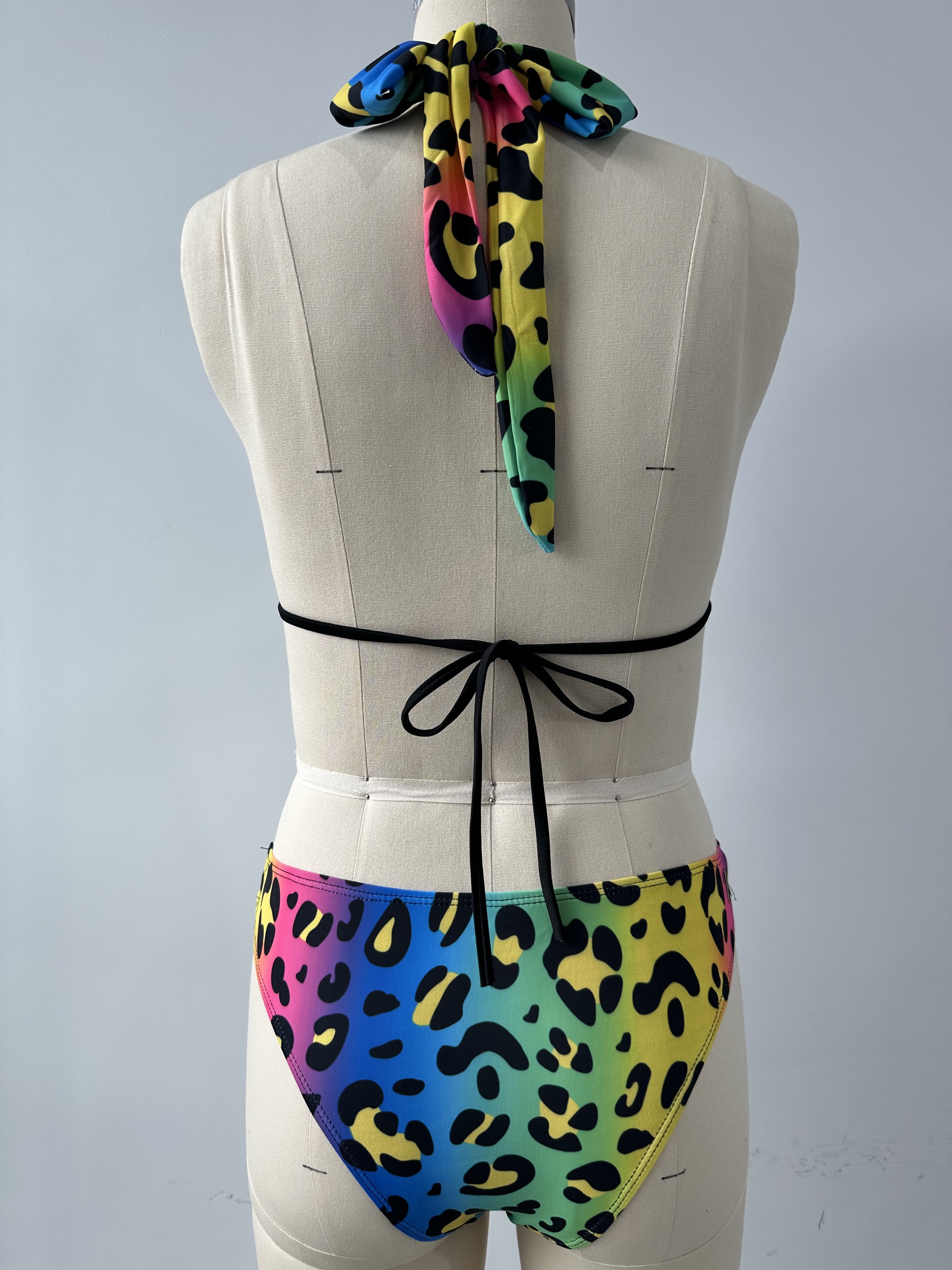 【Accessory Structure】Spaghetti strap halterneck bikini swimsuit with soft chest pads.
