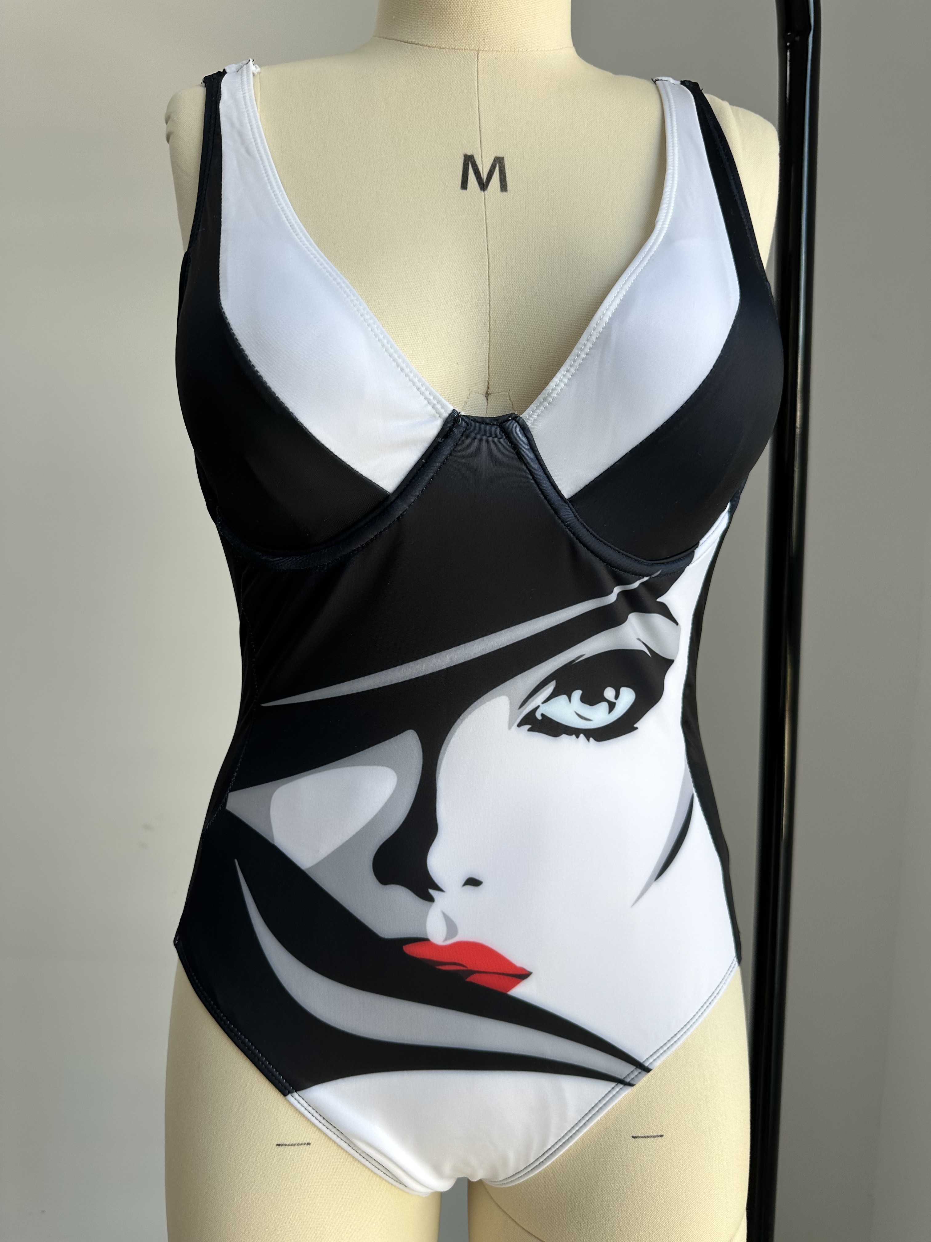 【Accessory Structure】Deep v-neck one piece swimsuit with soft chest pads.