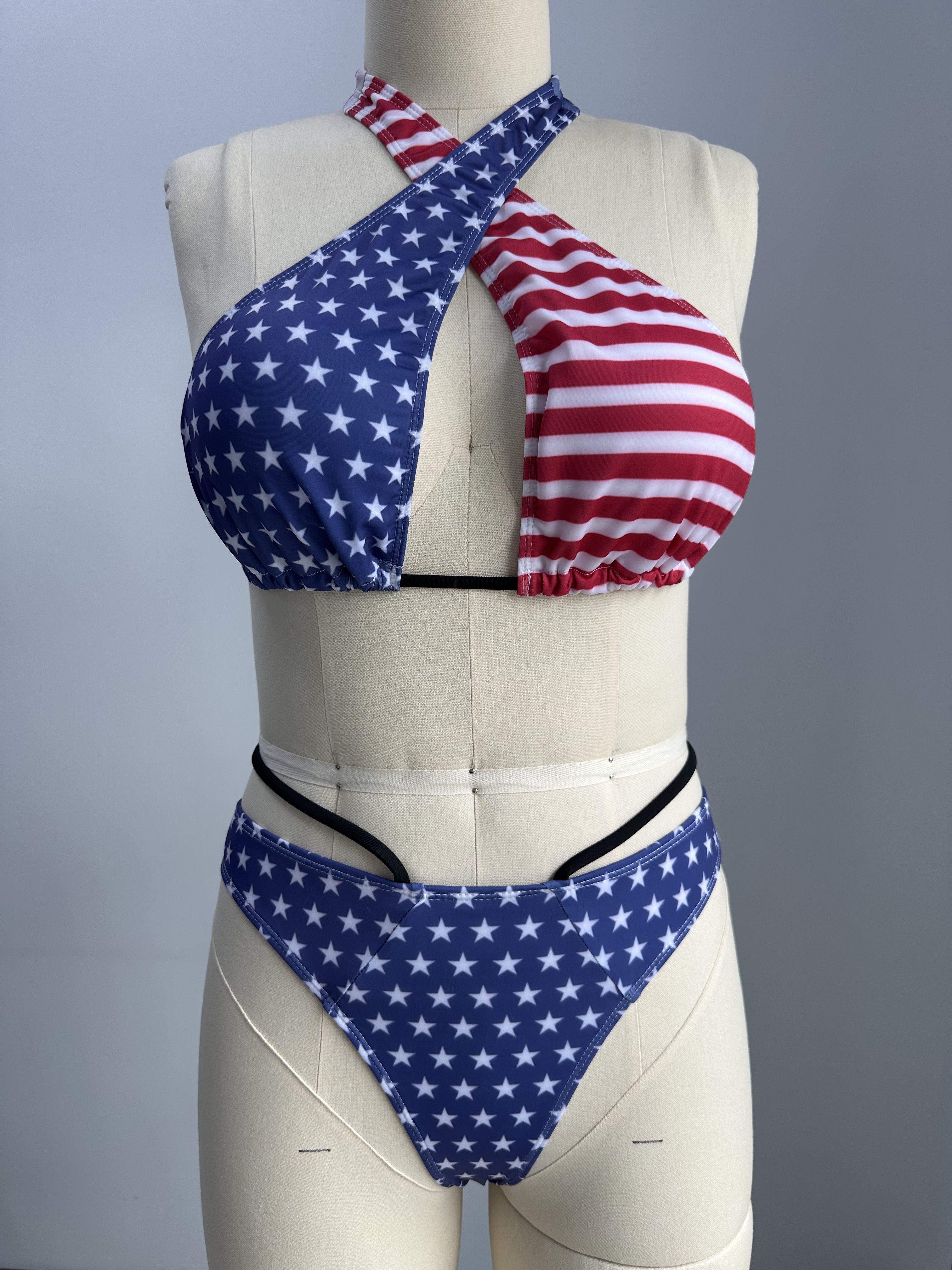 【Accessory Structure】Bikini features a criss-cross halter neck design. With soft chest pads.