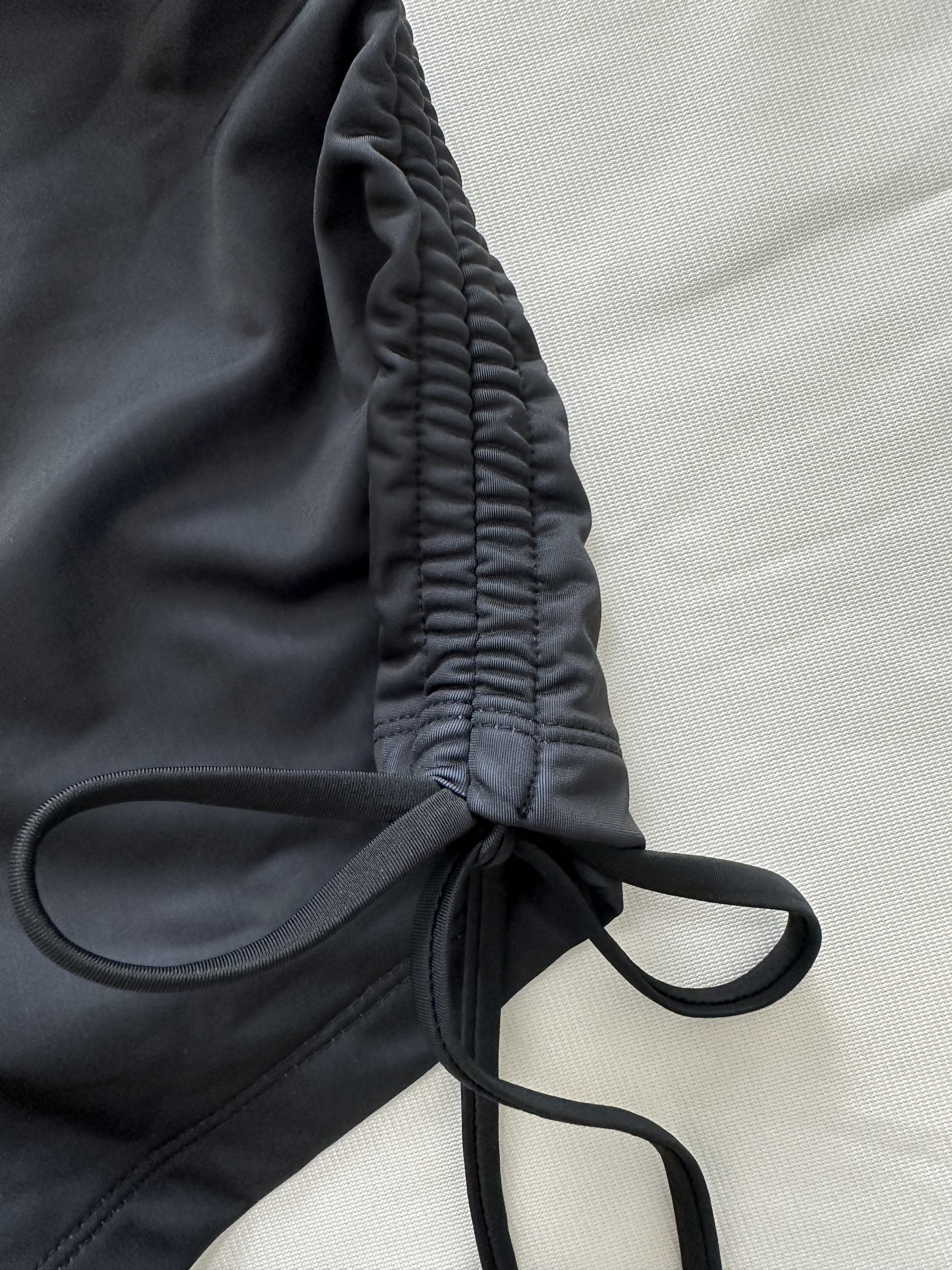 【Accessory Structure】With a daring split design for maximum movement and four-corner drawstring design for adjustability. With soft chest pads.