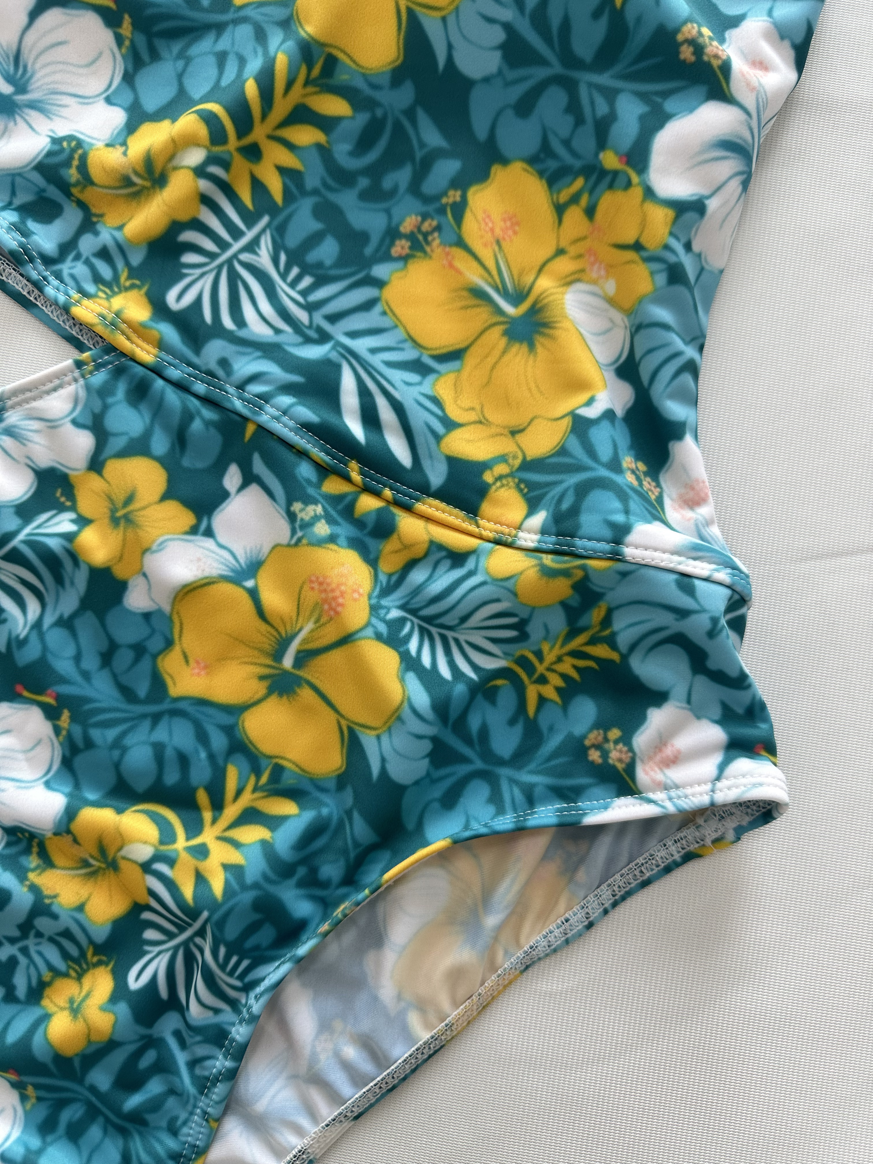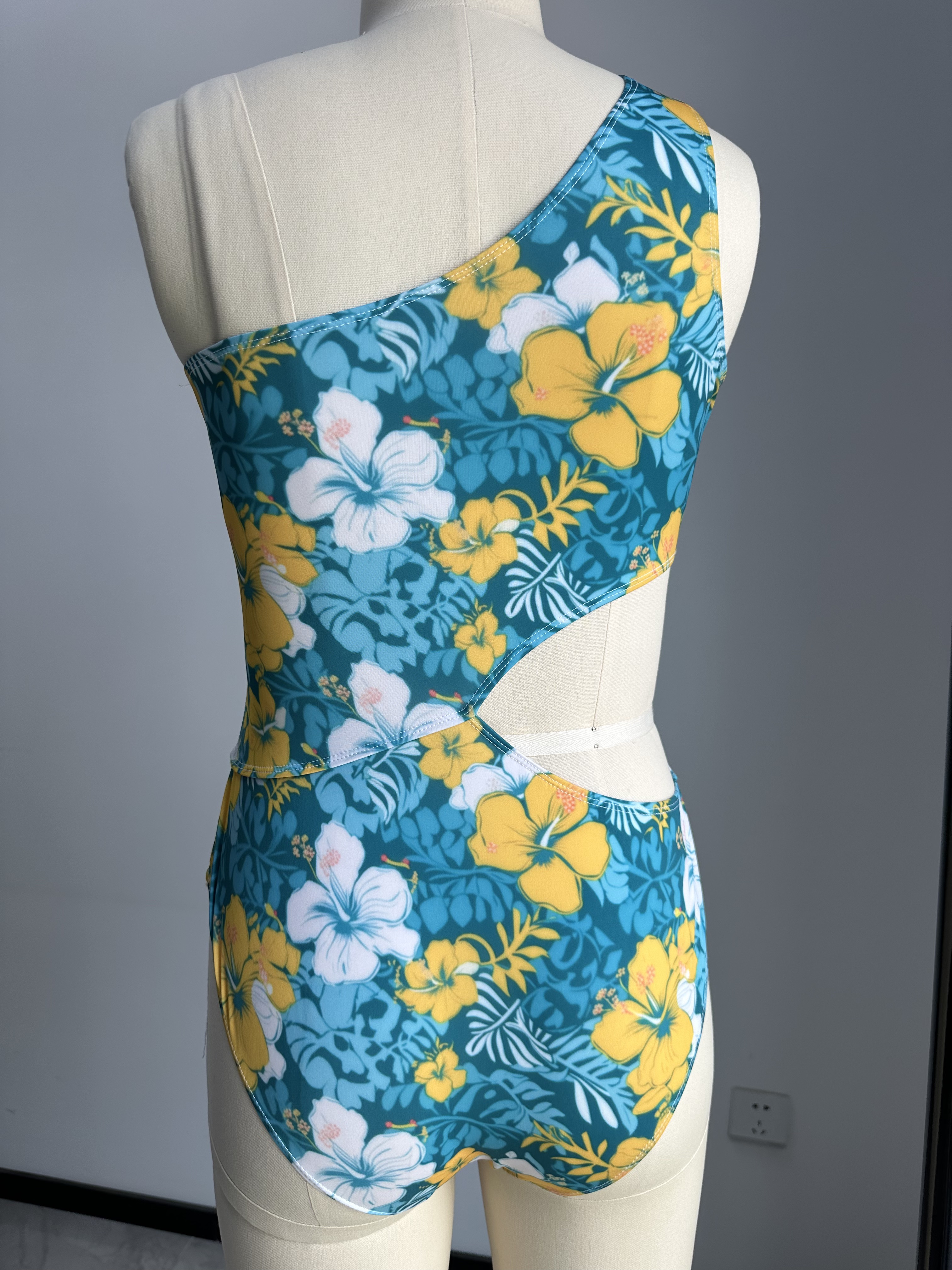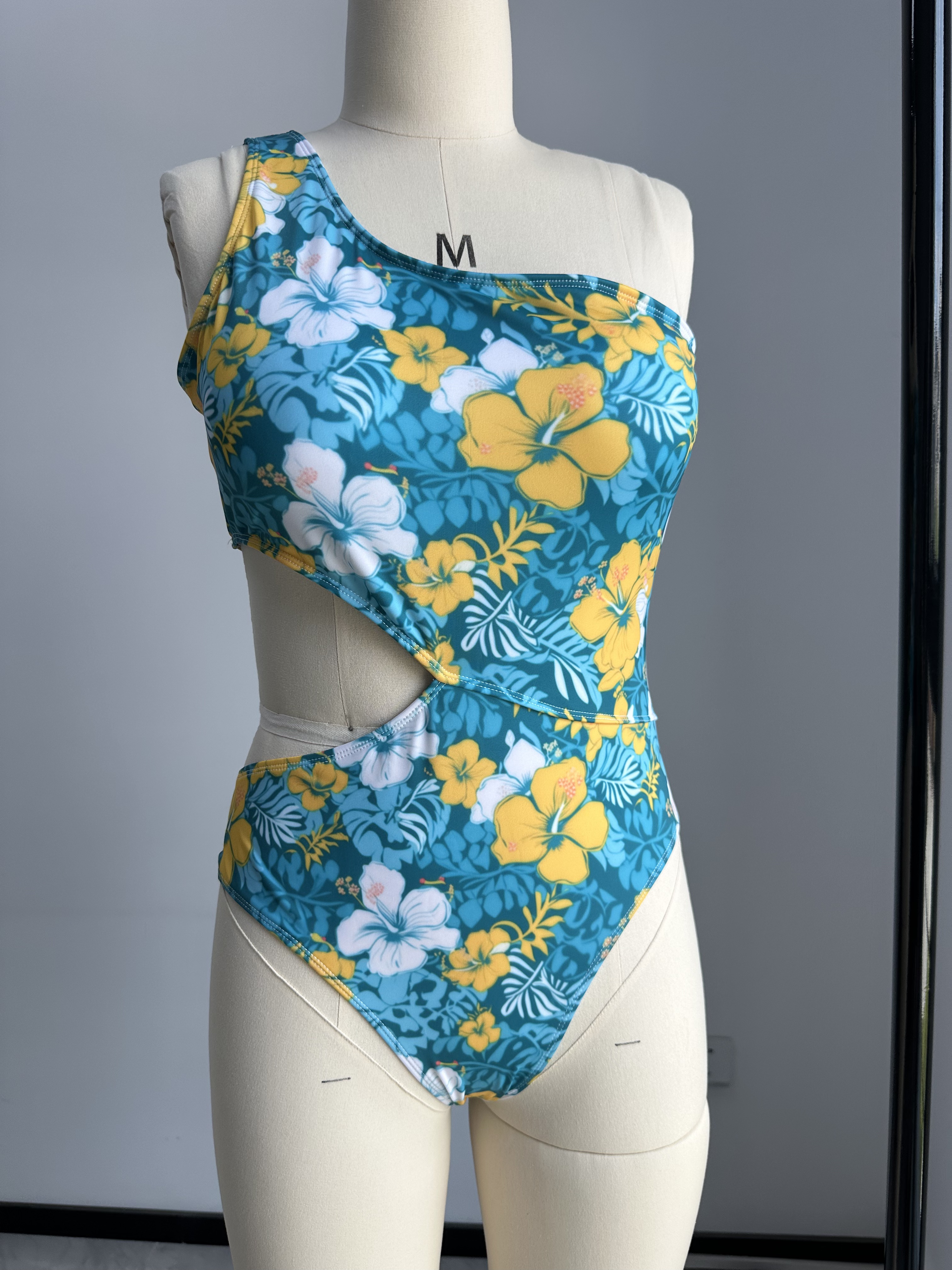 【Accessory Structure】One-shoulder one-piece swimsuit with side cutouts and soft chest pads.