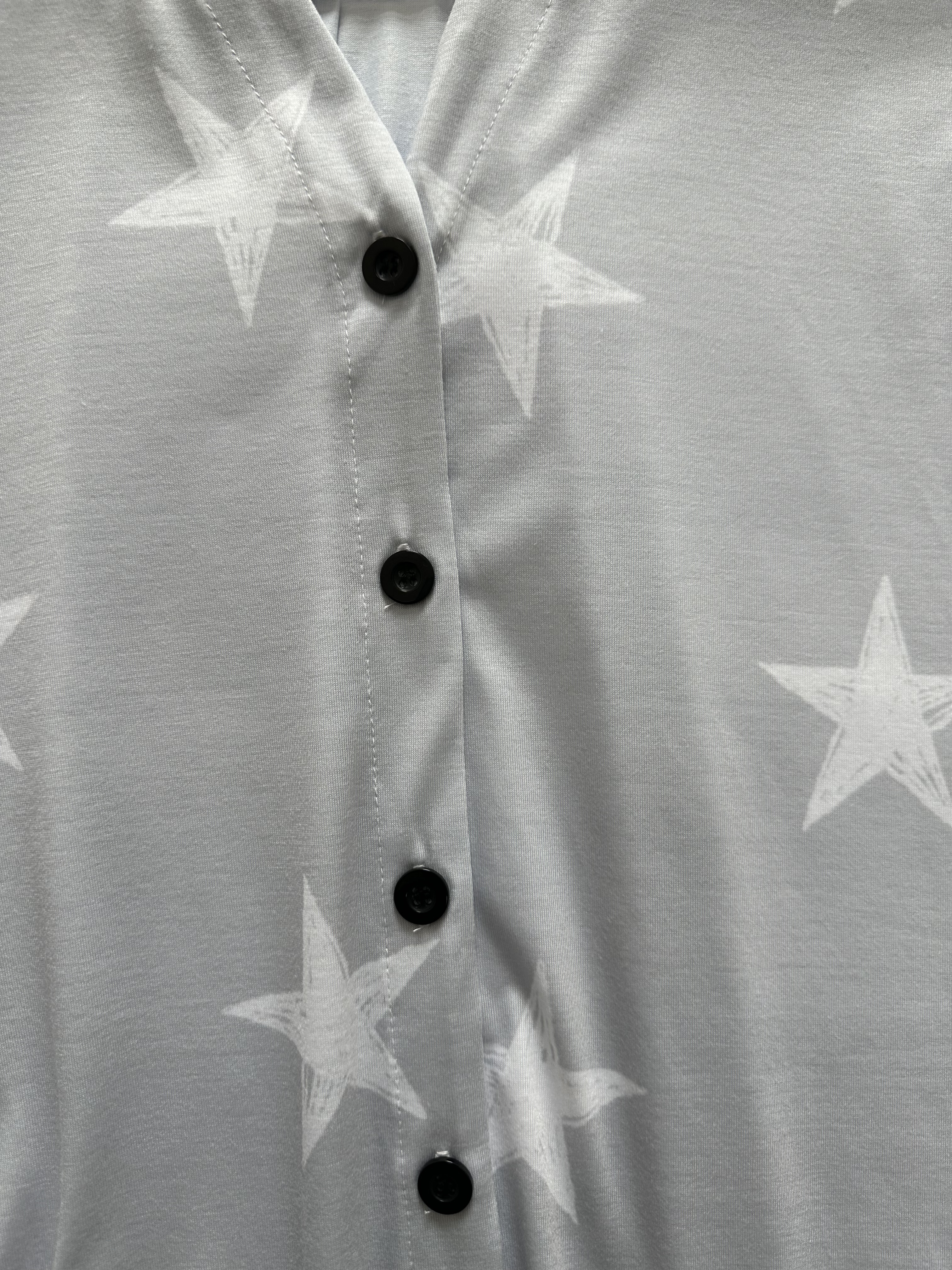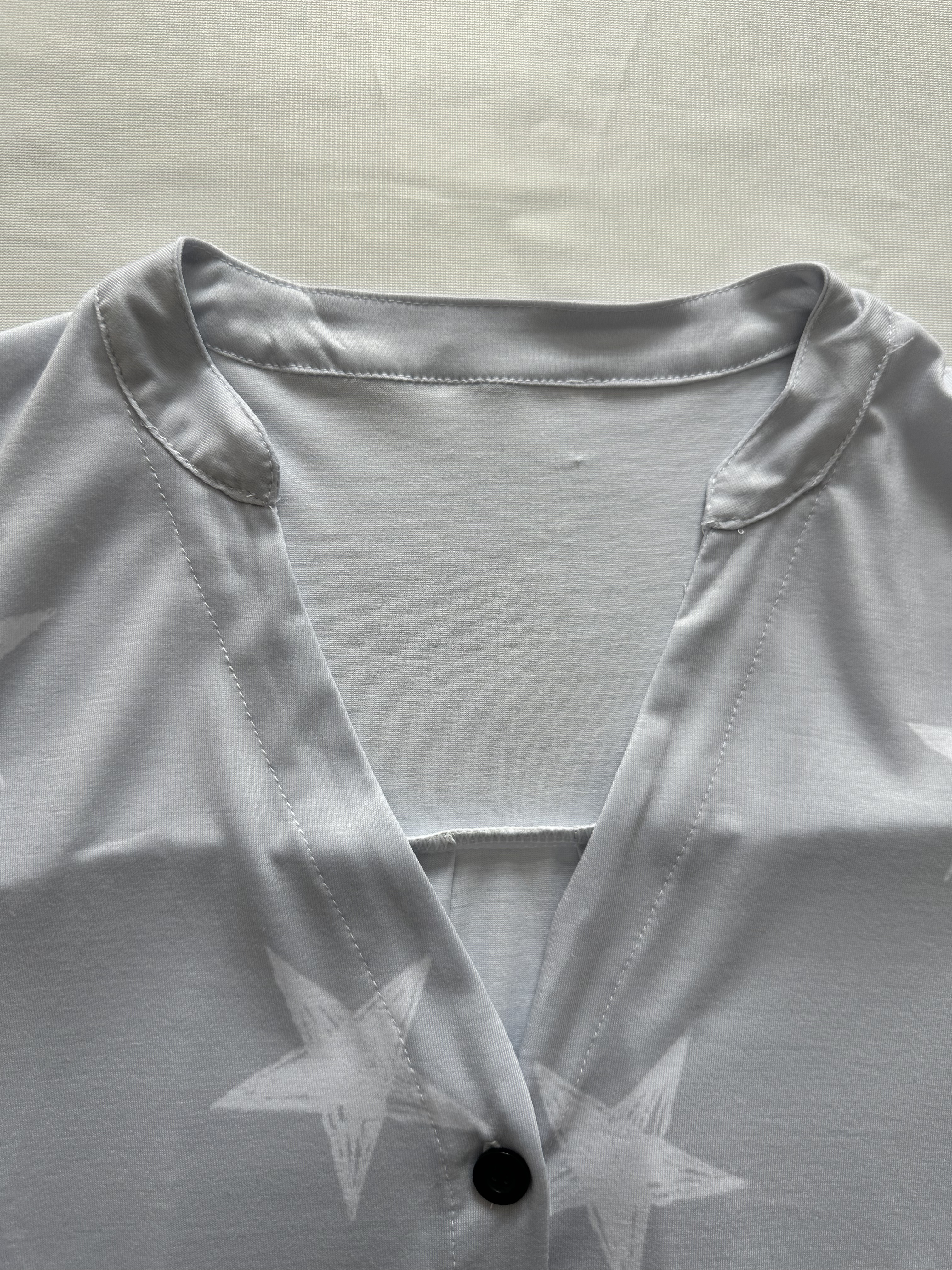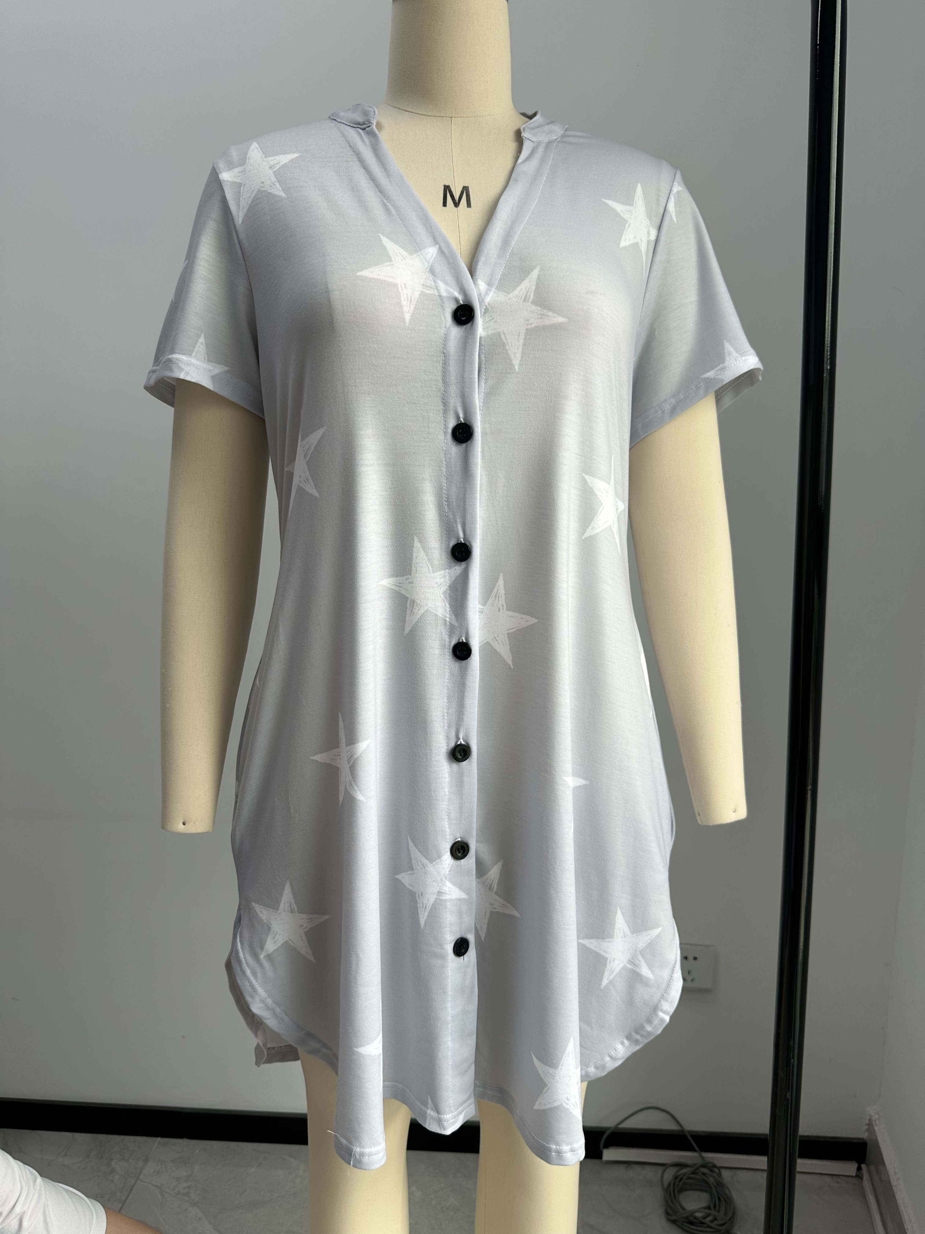 【Accessory Structure】Deep v neck, front button closure, short sleeve.