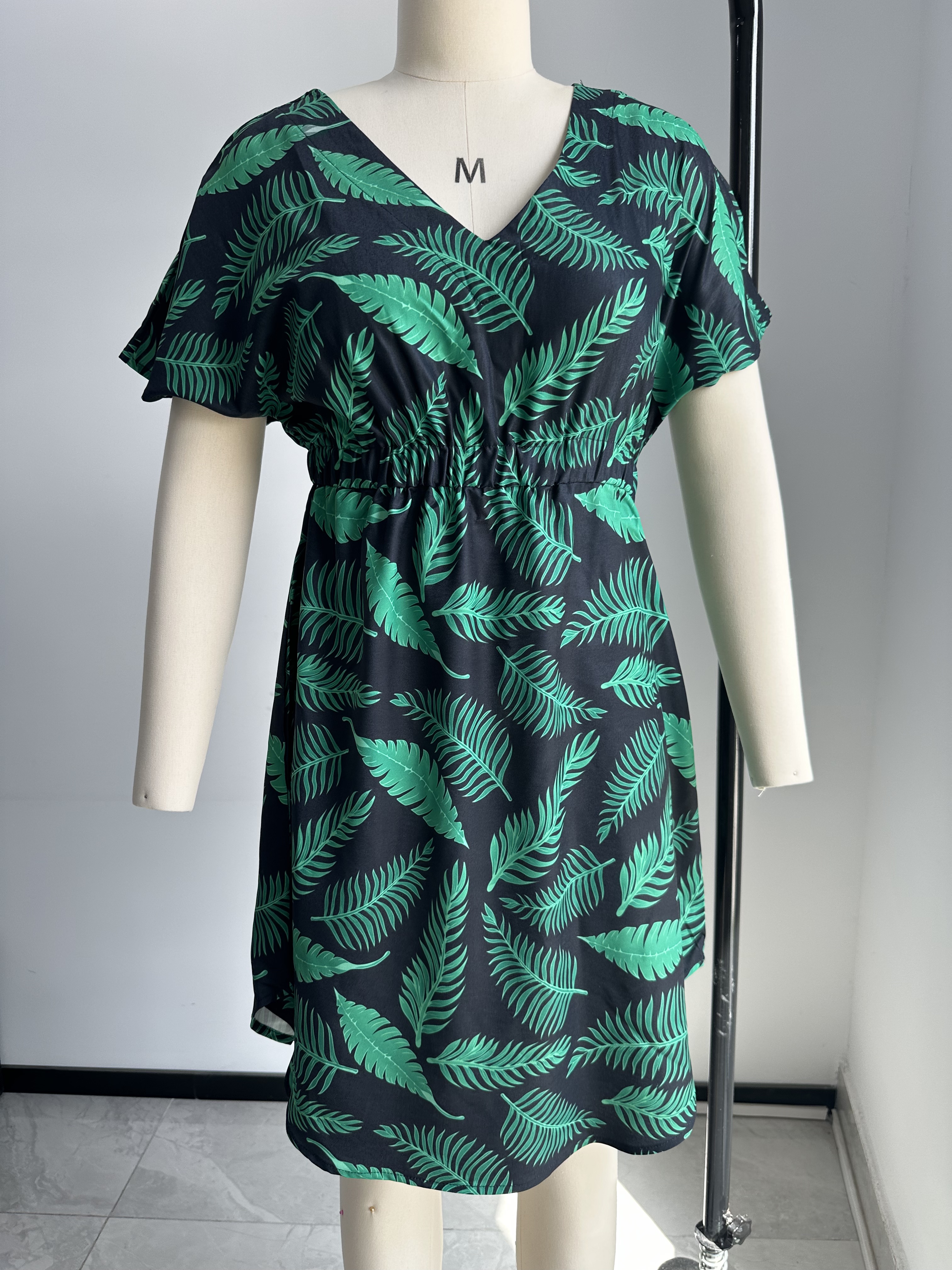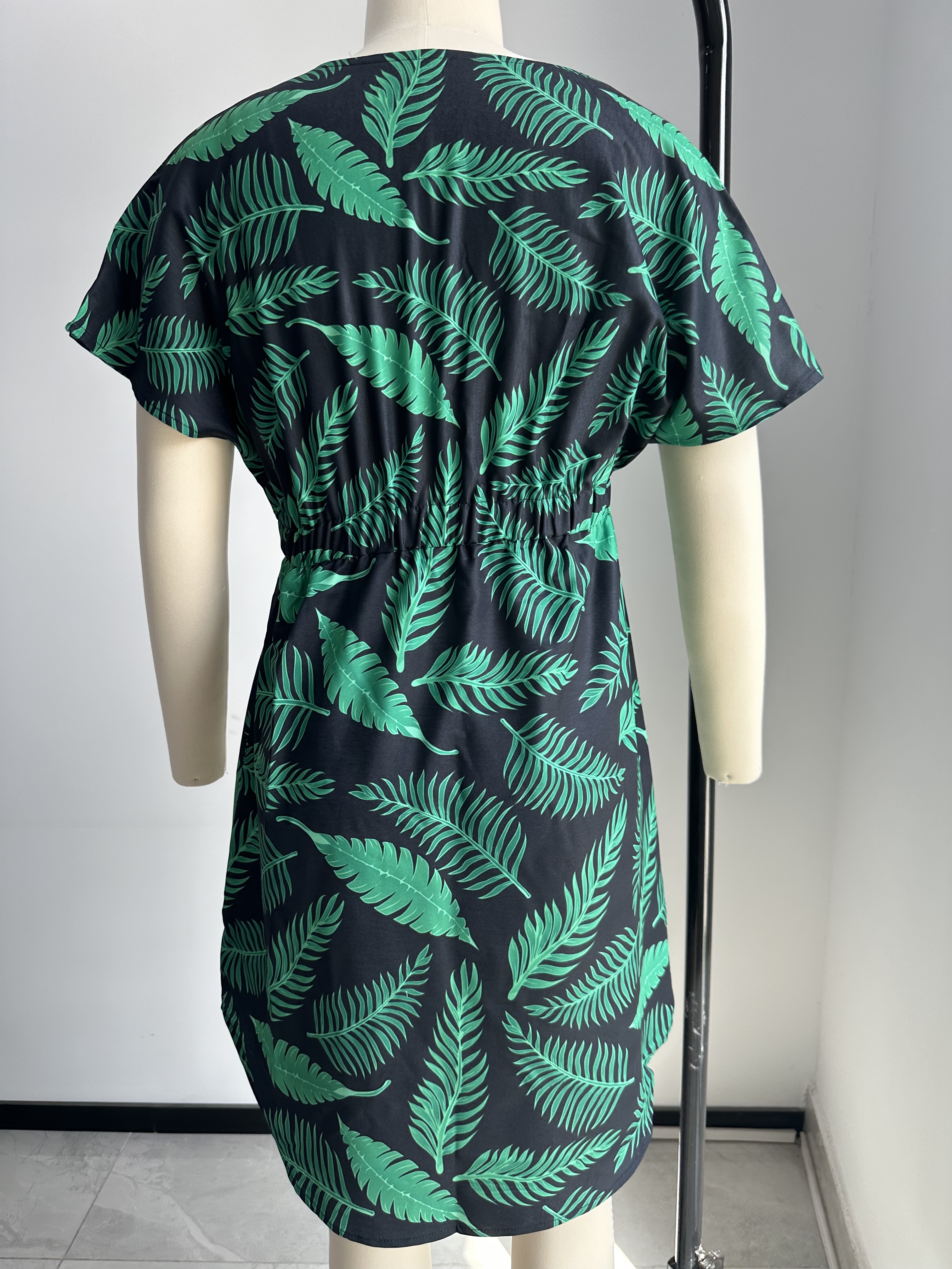 【Product Performance Characteristics】Step into elegance with our stunning V-neck Short Sleeve Midi Cover Up Dress. The classic V-neck and short sleeve design exude timeless sophistication, while the elastic waist ensures a perfect fit that accentuates your curves. With its eye-catching strips pattern, this dress is the epitome of grace and style. Embrace your inner elegance and make a statement wherever you go with this chic cover-up dress.