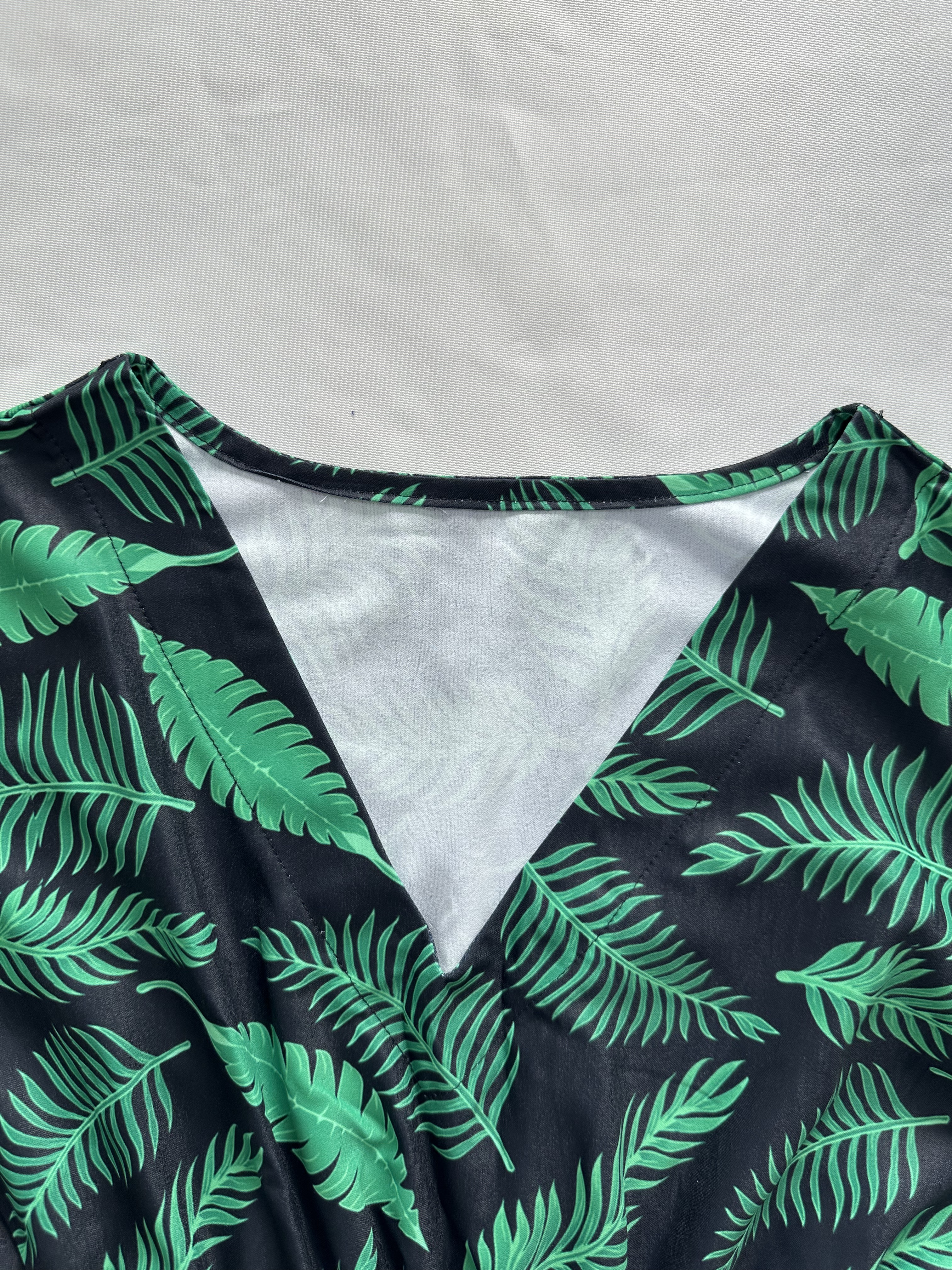 【Accessory Structure】V-neck, Short Sleeve, Elastic Waist Strips Midi Dress.The elastic waist design can make it more fit your curve. Wearing it, you are the representative of elegance.