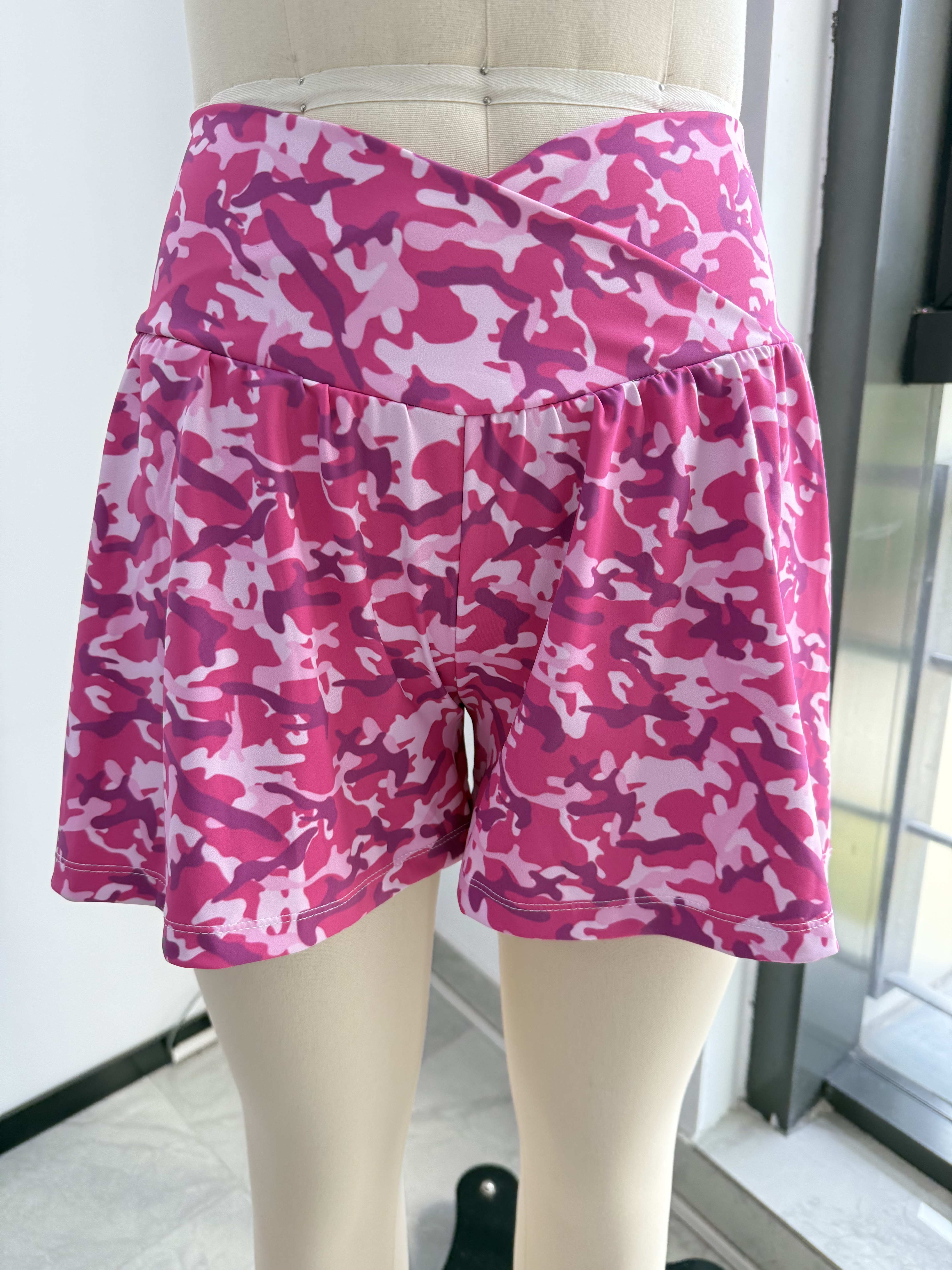 【Accessory Structure】Soft & Comfy Material;Crossover High Waisted Shorts;2 In 1 Flowy Shorts;Side Pocket.
