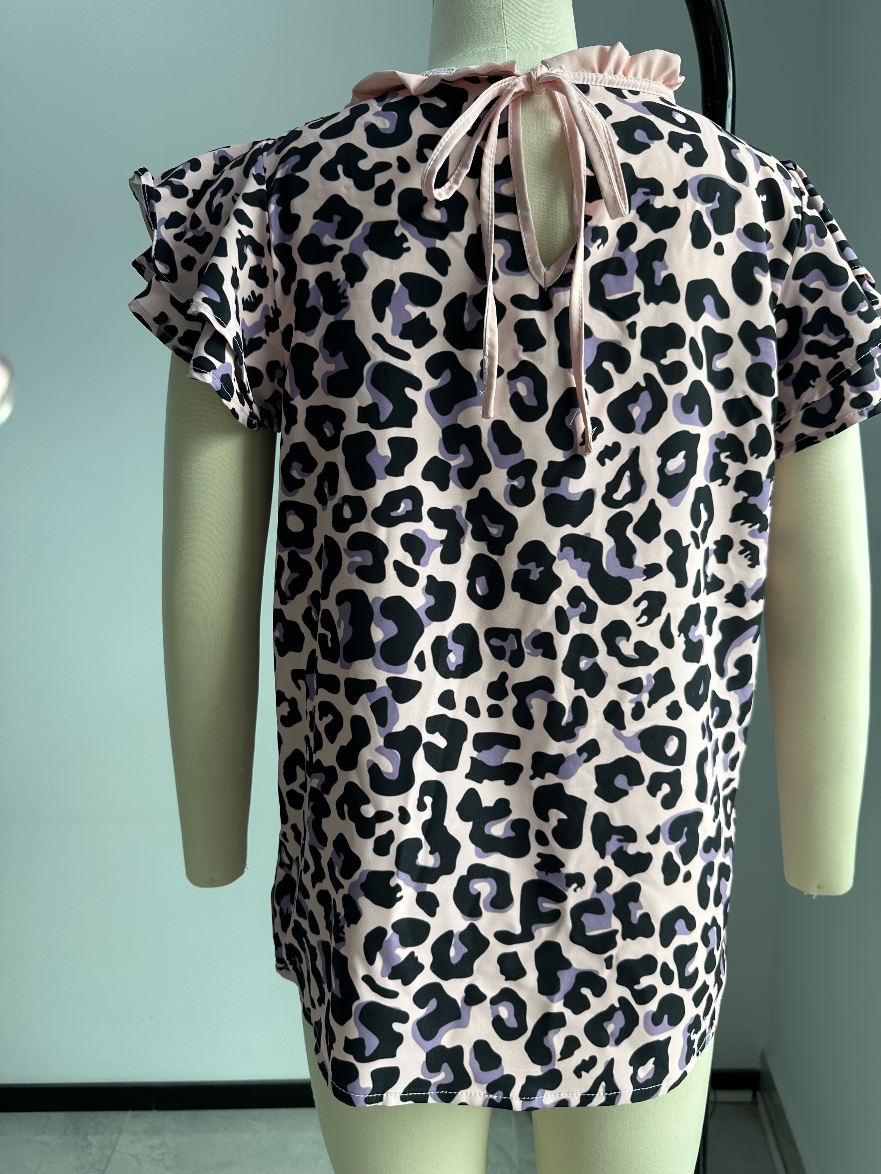 【Accessory Structure】Crewneck, Short Sleeve, Lightweight Fabrication, Back Keyhole with Button Closure, Blouse Top.