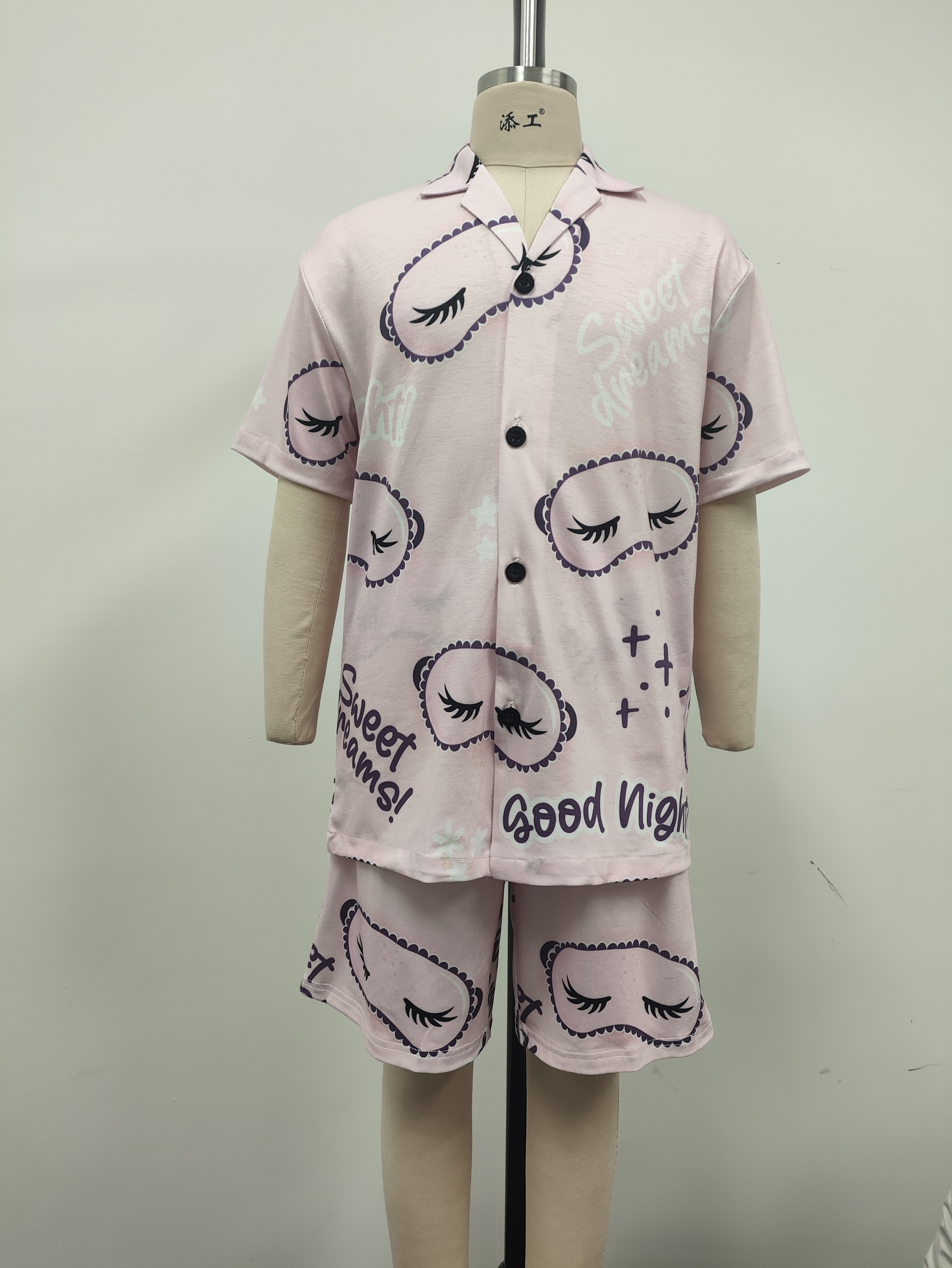 【Accessory Structure】Designed with a V-neckline, front button closure, short sleeves, and matching elastic waistband shorts for a relaxed and comfortable fit.