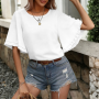 | Custom Individualized Women's V-Neck Ruffle Puff Sleeve T Shirts |