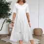 | Custom Individualized Women's Square Neck Puff Sleeve Tiered A Line Dress |