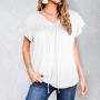 Custom Individualized Women's V-Neck Short Sleeve Knotted Front Blouse Tops $8.67 $6.36