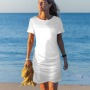 | Custom Specialized Women's Round Neck Short Sleeve Wrap Ruched Bodycon Dress |