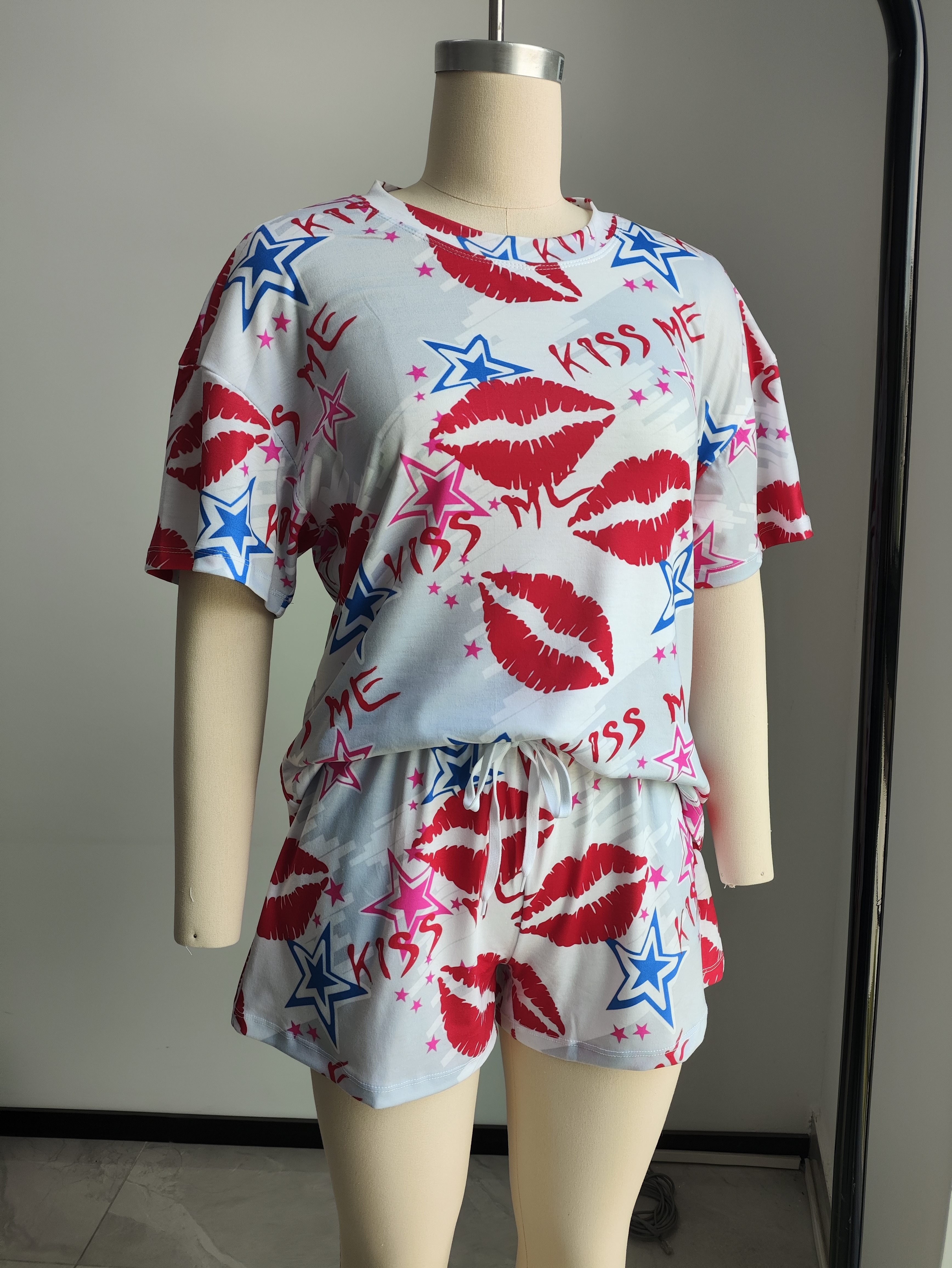 【Product Performance Characteristics】Introducing our fashionable and comfortable PJ and lounge set, made of super soft stretchy and skin-friendly polyester material fabric, ensuring both style and functionality. The crew neck shirt offers a relaxed and effortless look, while the shorts provide a convenient and practical element with their drawstring elastic waist and pockets, allowing you to customize the fit to your liking.