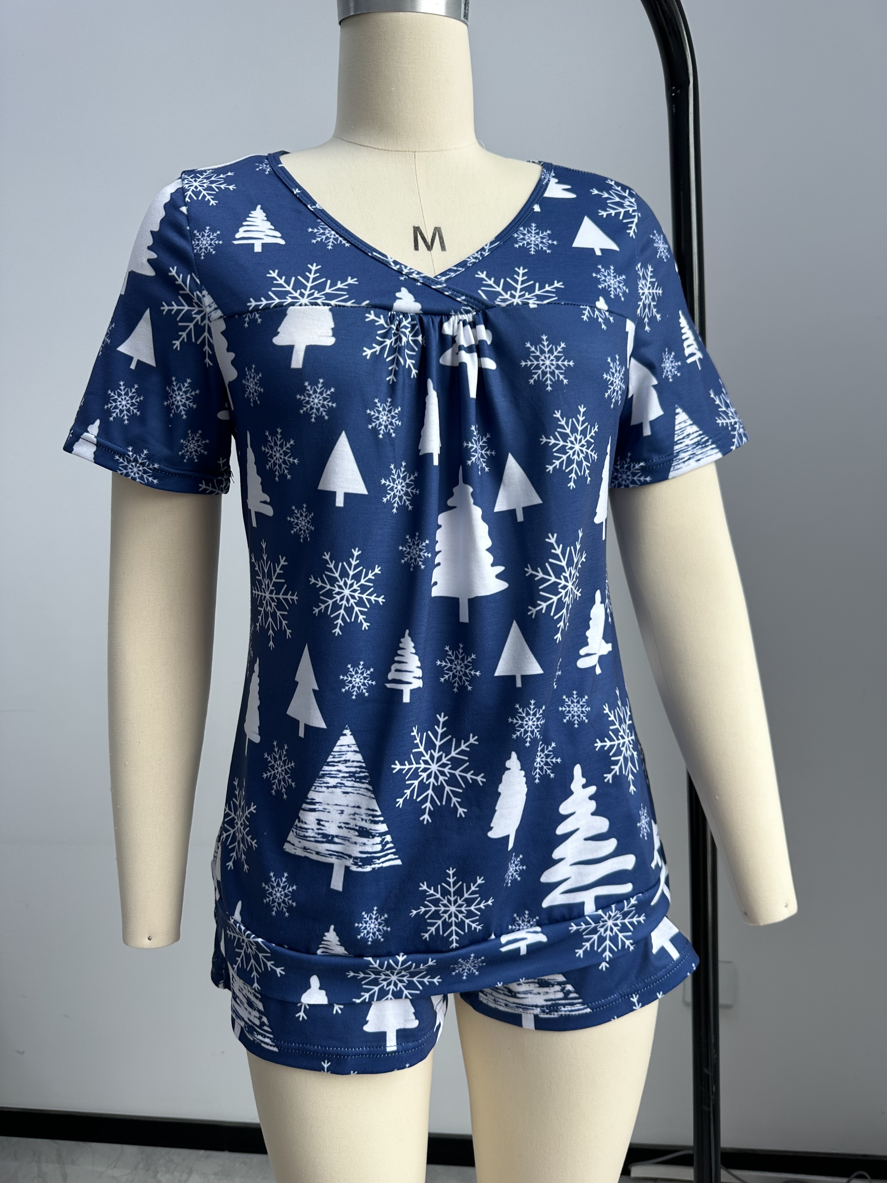 【Accessory Structure】Top features v-neck, short sleeves, pleating in the front neckline. Shorts designed with Elastic Waist and Drawstring.