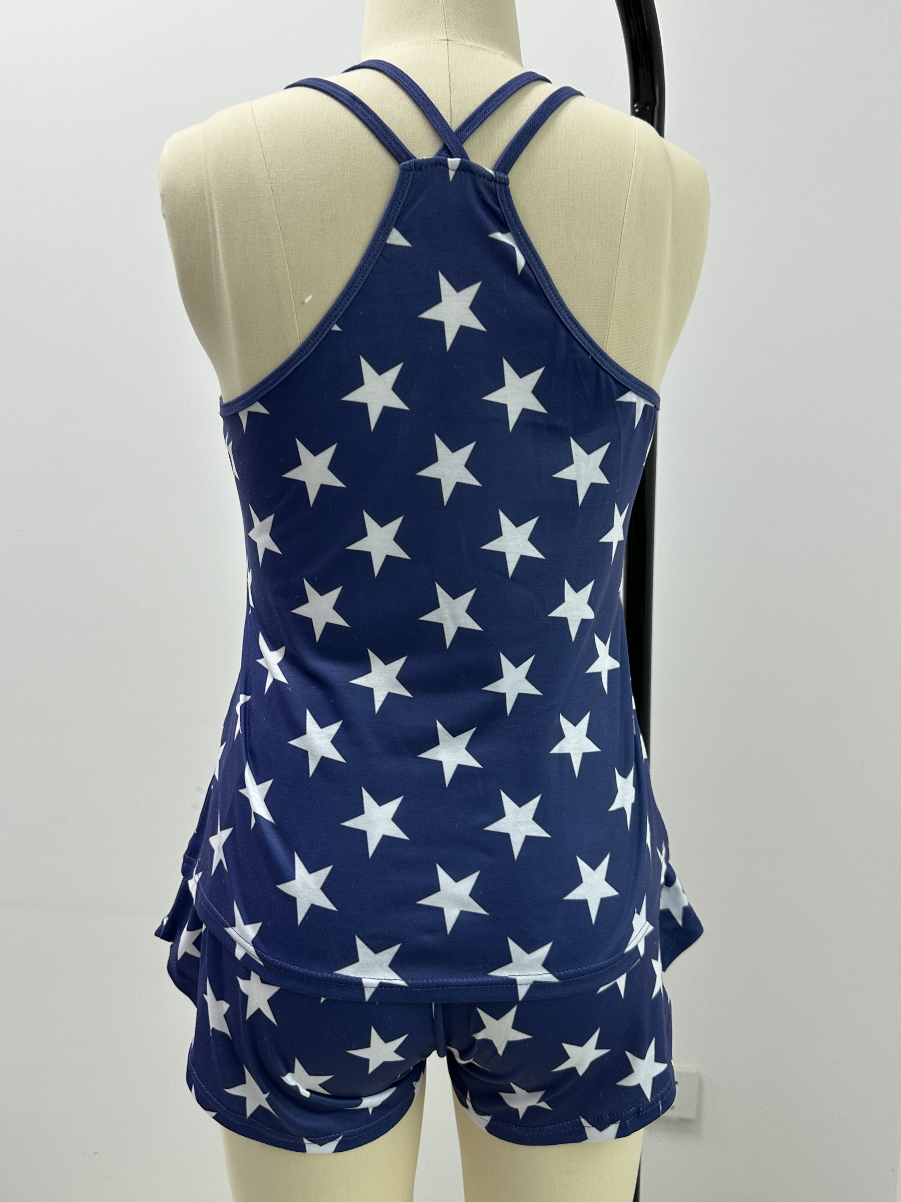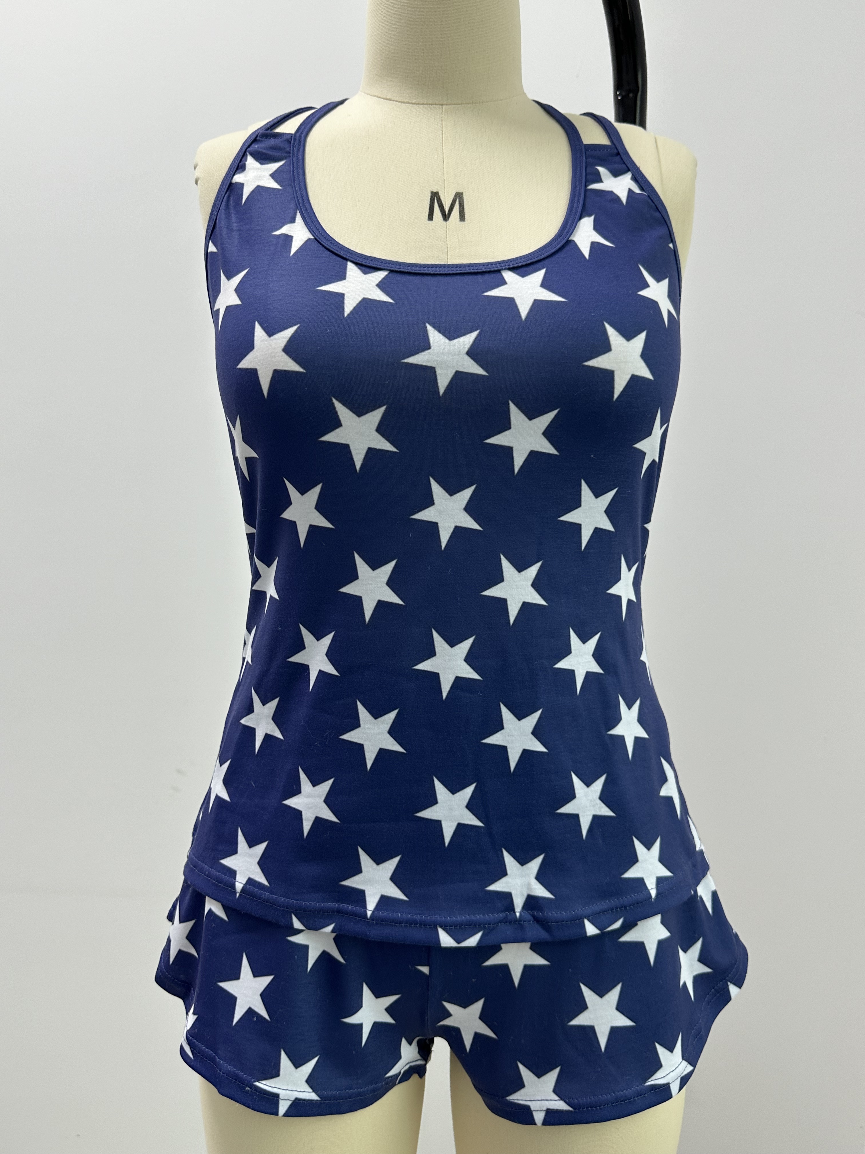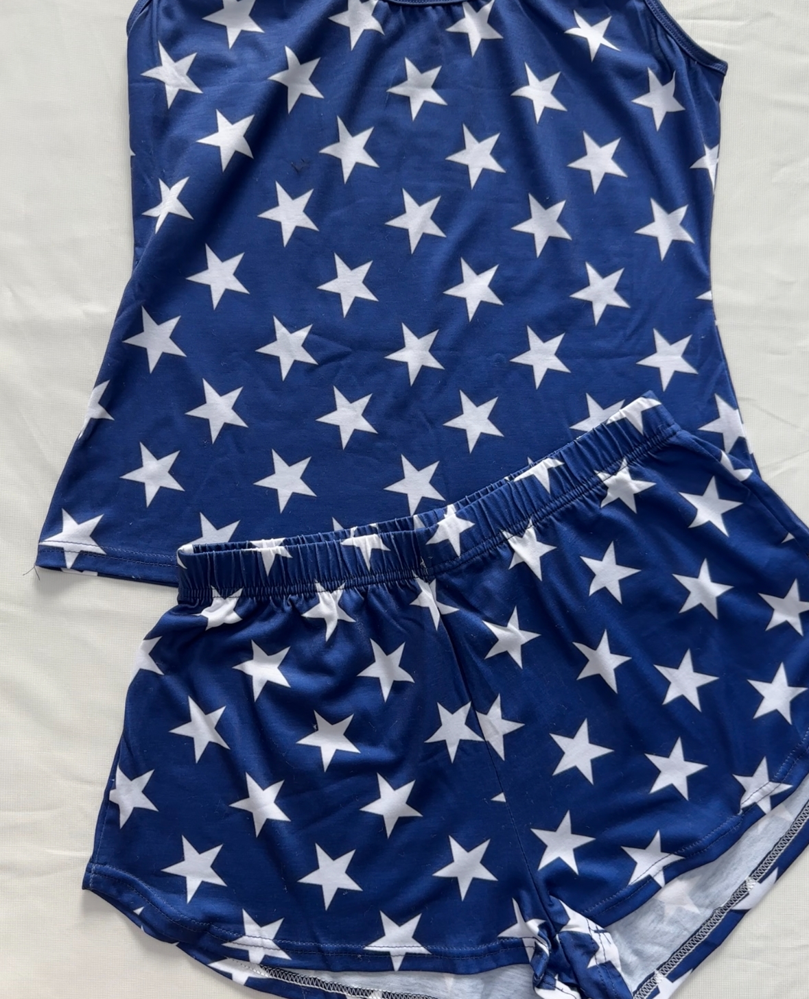 【Accessory Structure】Sleeveless pj top features racerback tank top, crew neckline. Short boxer pajama bottom.