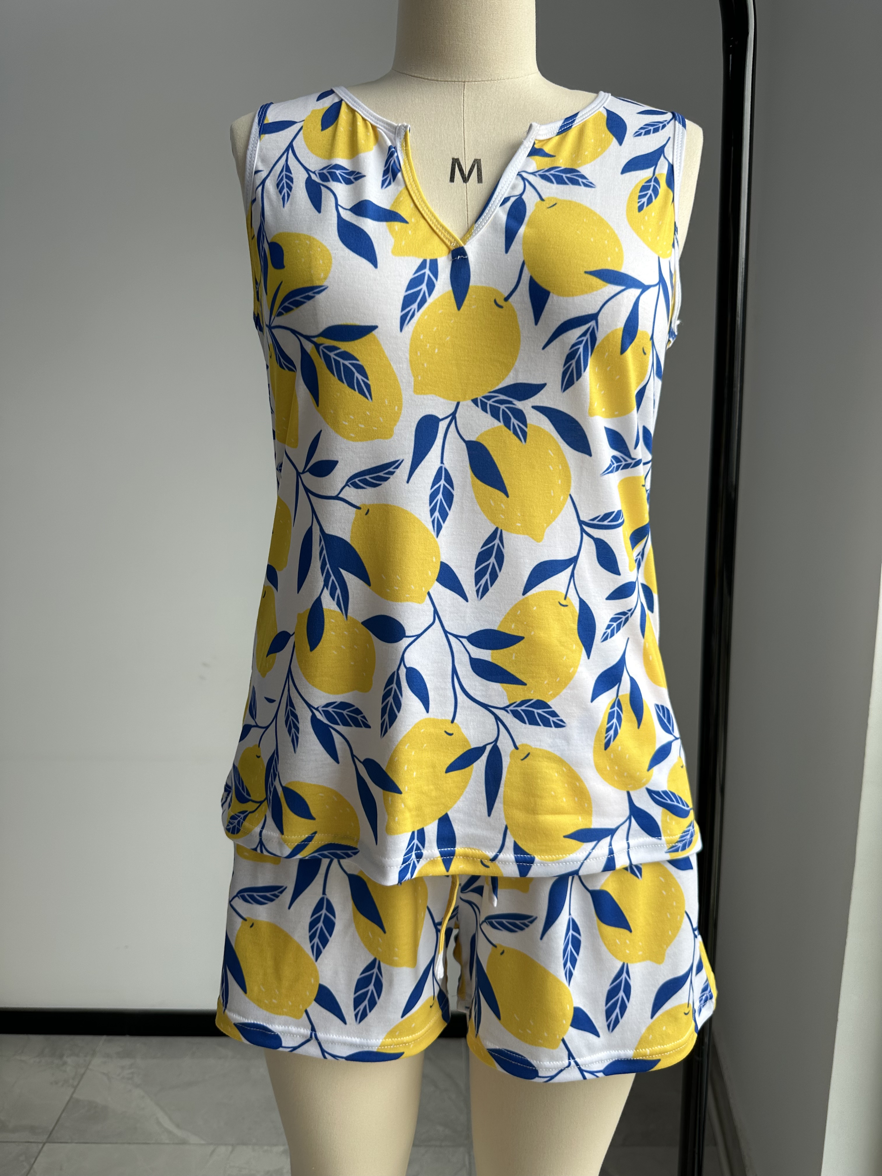 【Accessory Structure】This pajama sets for womens has a tunic tank top that features a notched v neck, casual loose fit. Pajama shorts with soft elastic waistband that fits for any body size and pockets on both sides.
