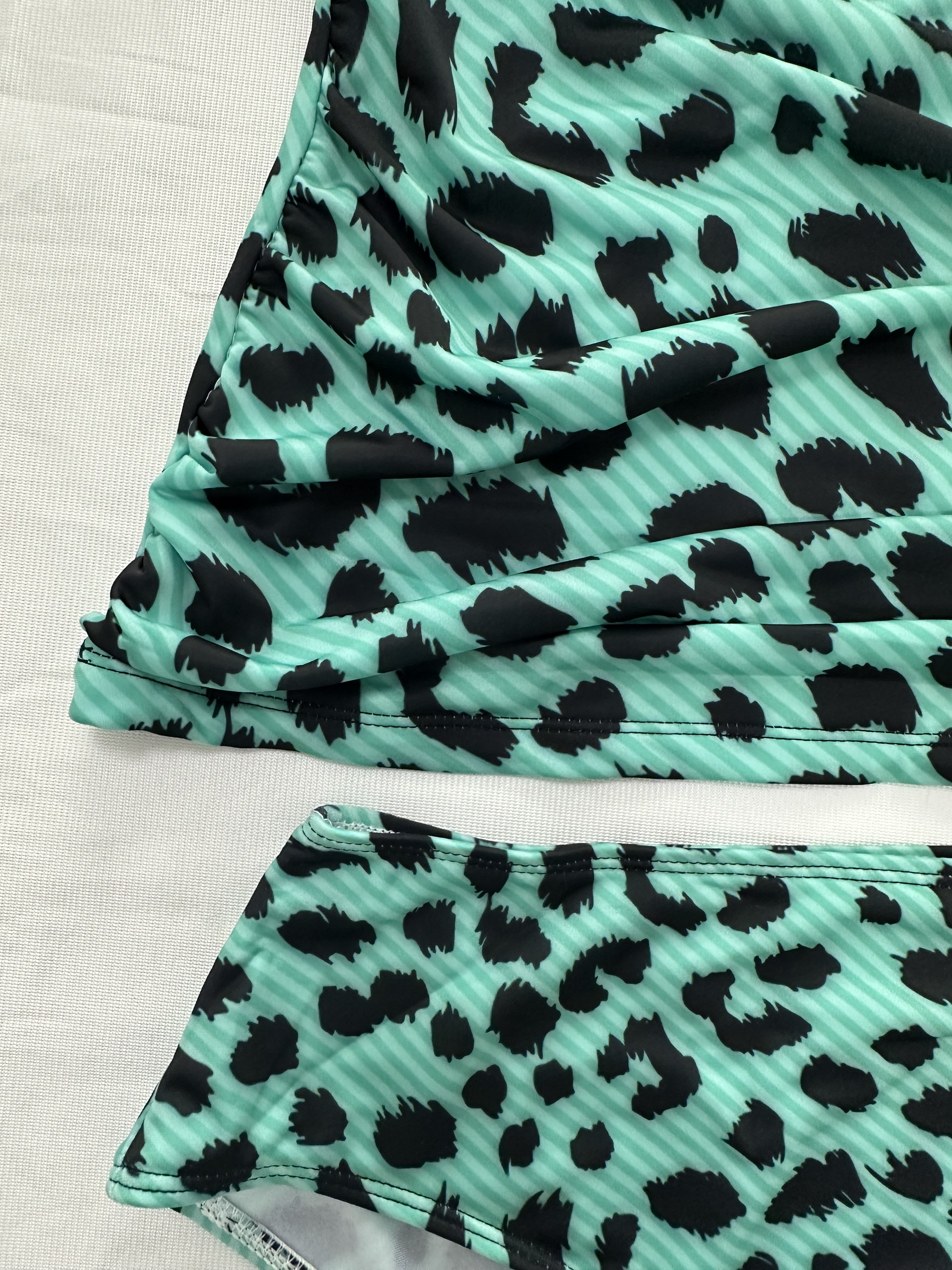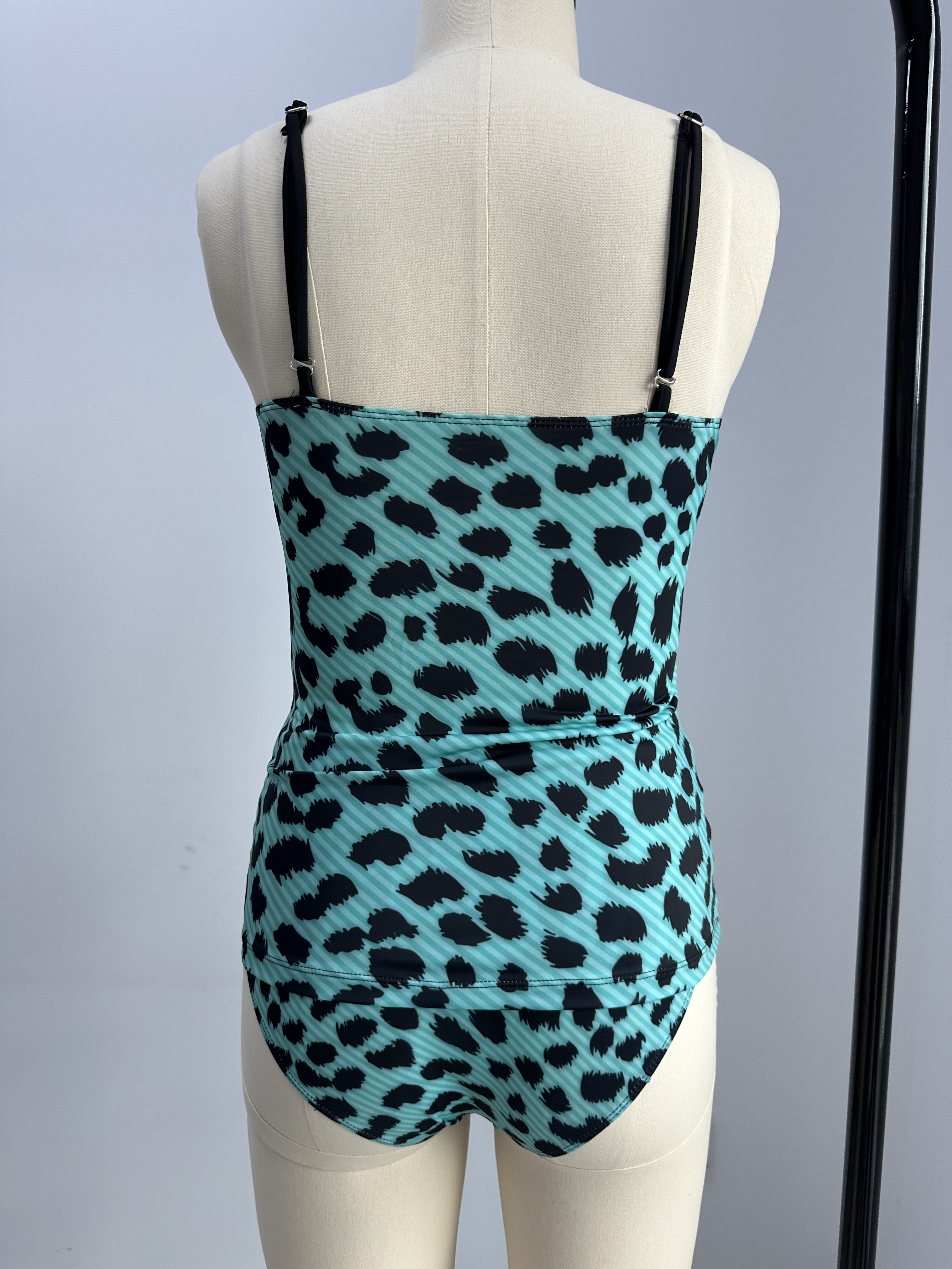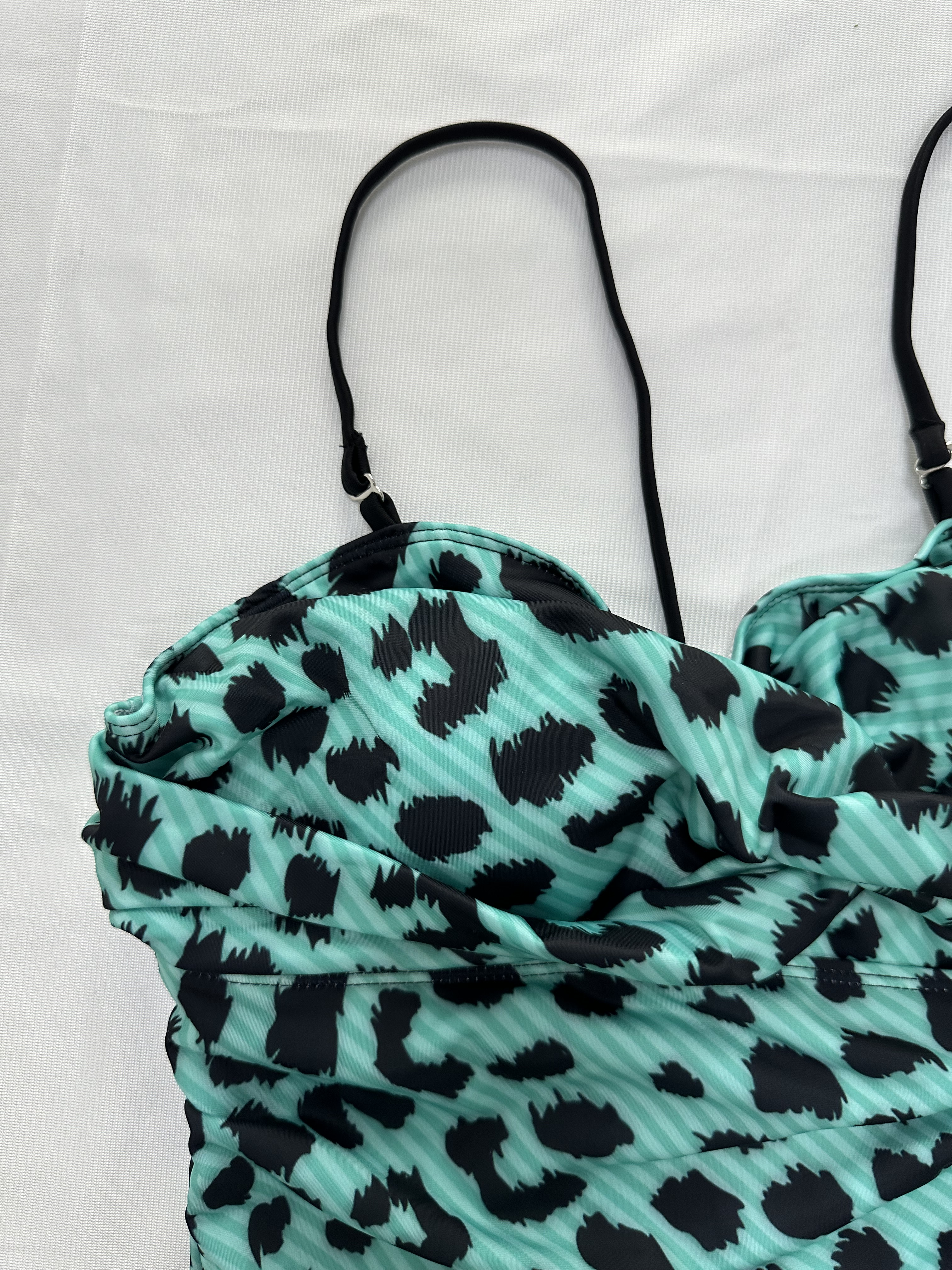 【Accessory Structure】Ruched tummy control top design. With chest pad & adjustable spaghetti shoulder straps.