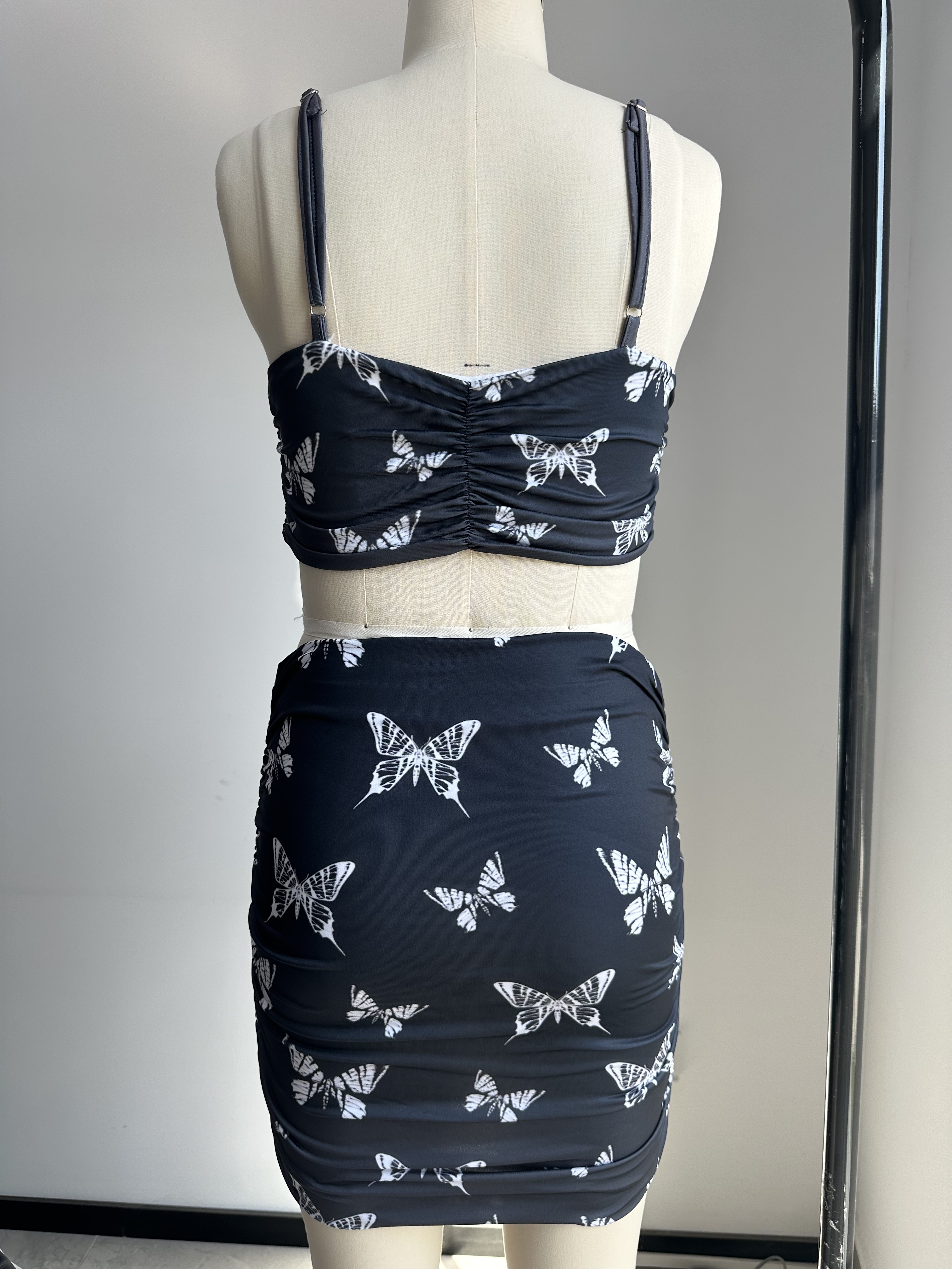 【Accessory Structure】Ruched,adjustable tops and skirt,high waist,bodycon,mini sexy 2 piece outfit.