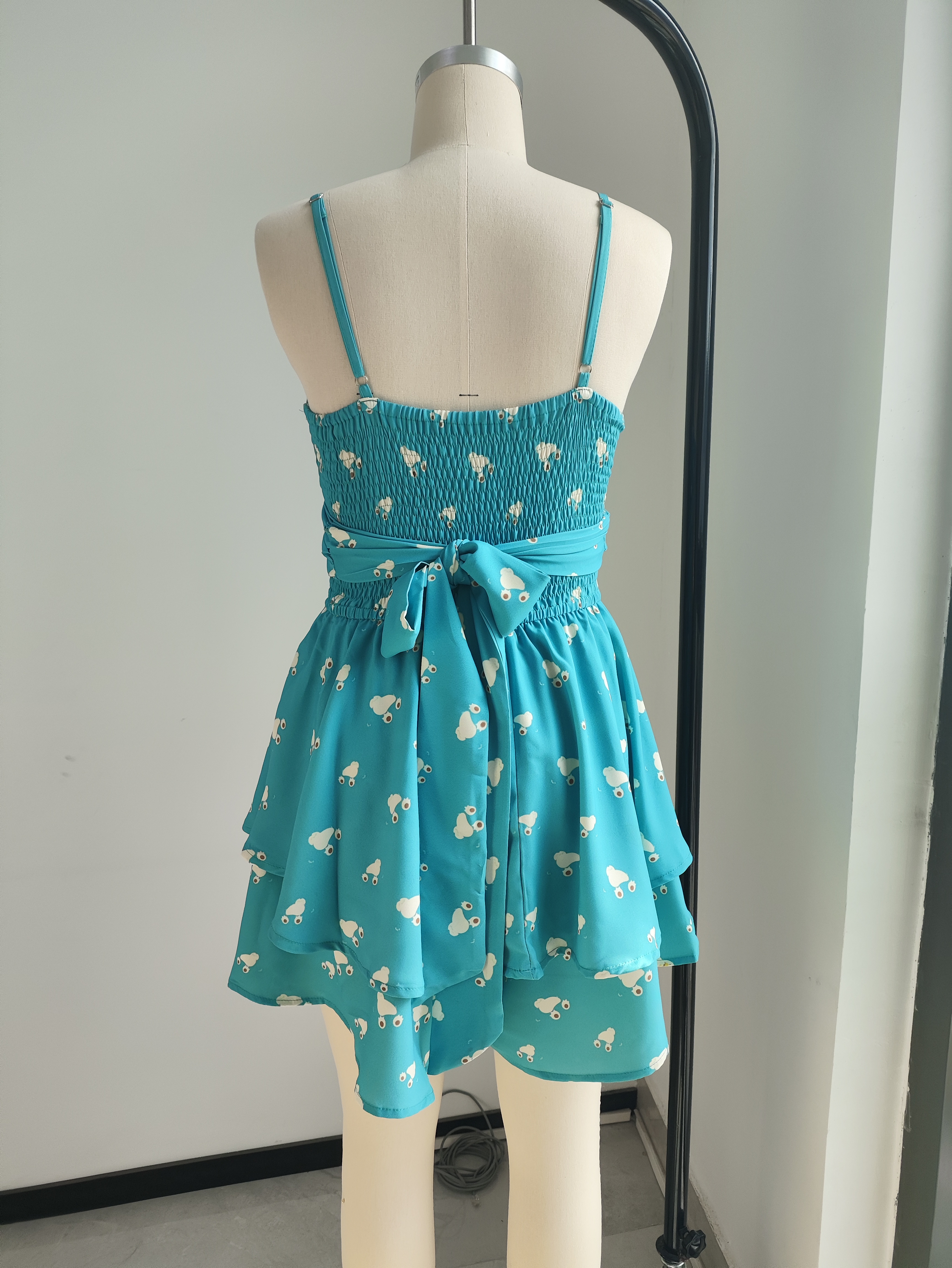 【Product Performance Characteristics】Adjustable spaghetti straps, deep v neck, smocked waist, cutout, tie knot back, double layer ruffle hem, above the knee. Casual rompers for women, but with the confident elegance of a dress.Features a tie-yourself design. Wrap both straps around the chest and knot at the back. Best of all, you can freely adjust the comfort according to your body shape. Sexy or conservative, it's up to you.