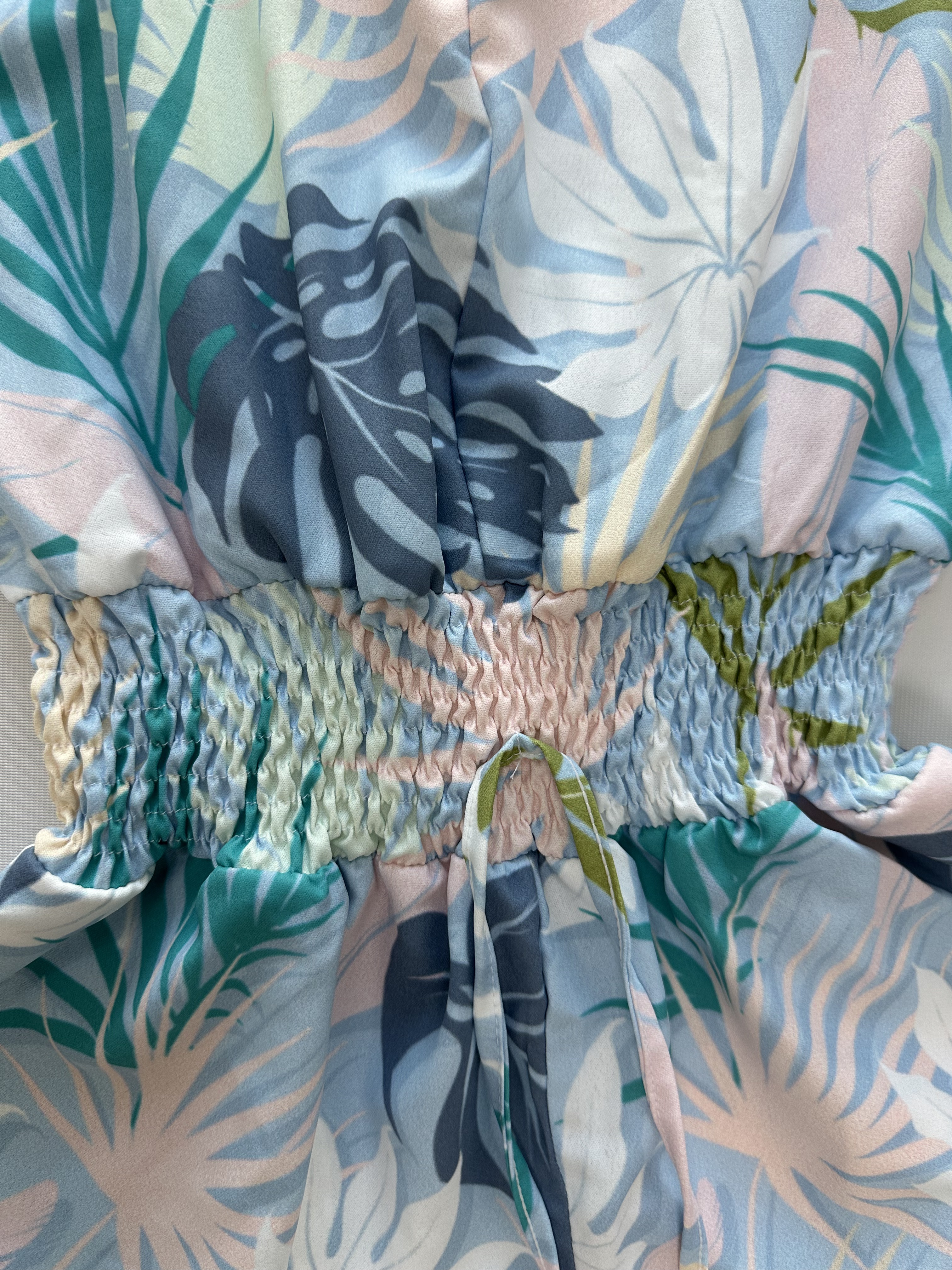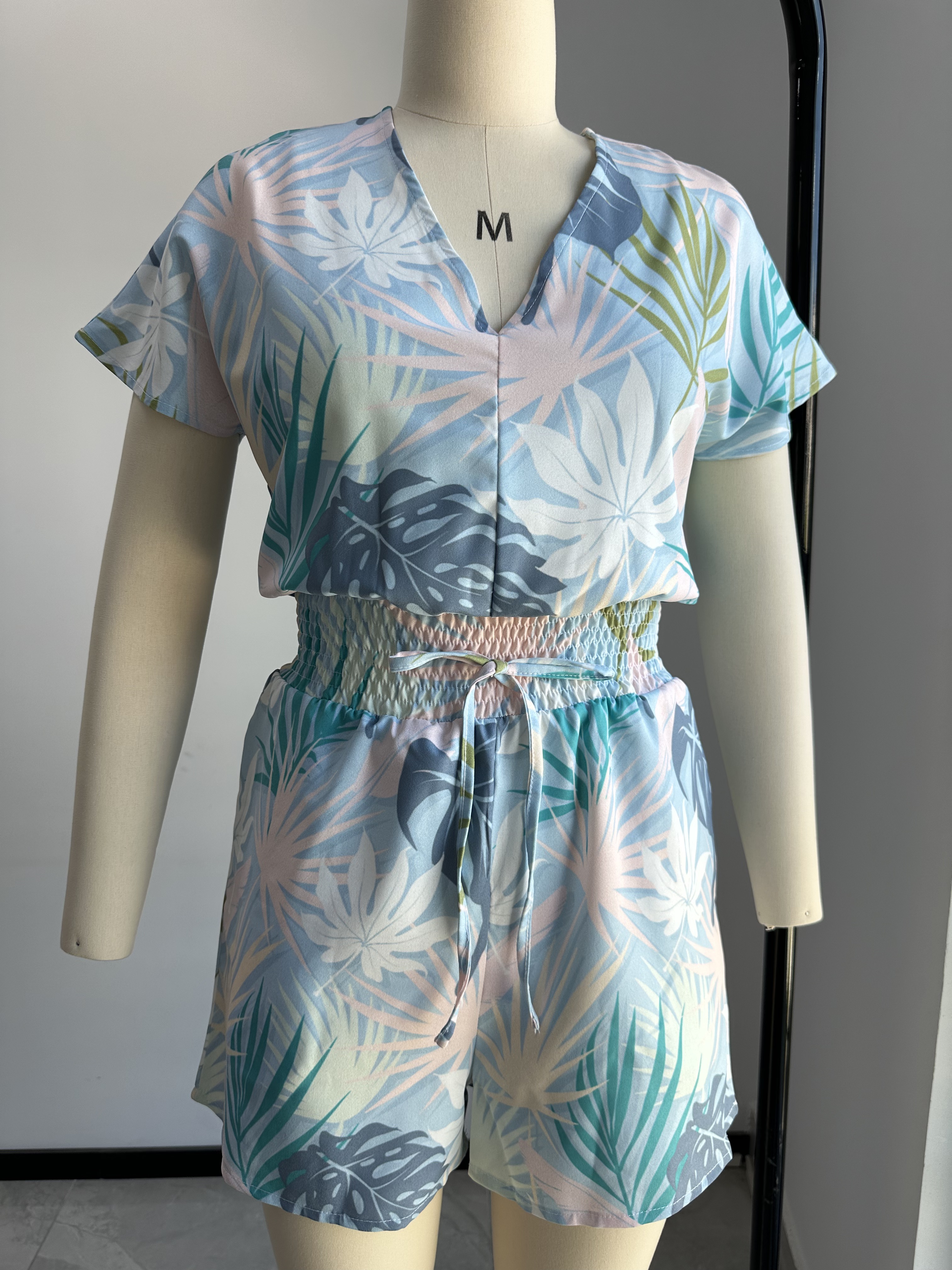 【Product Performance Characteristics】The shirred design and drawstring waist ensure a customizable and comfortable fit.Made from lightweight and breathable materials for all-day comfort.The V-neck adds a touch of elegance, making it suitable for both casual and dressy occasions.The shorts design allows for easy and unrestricted movement.