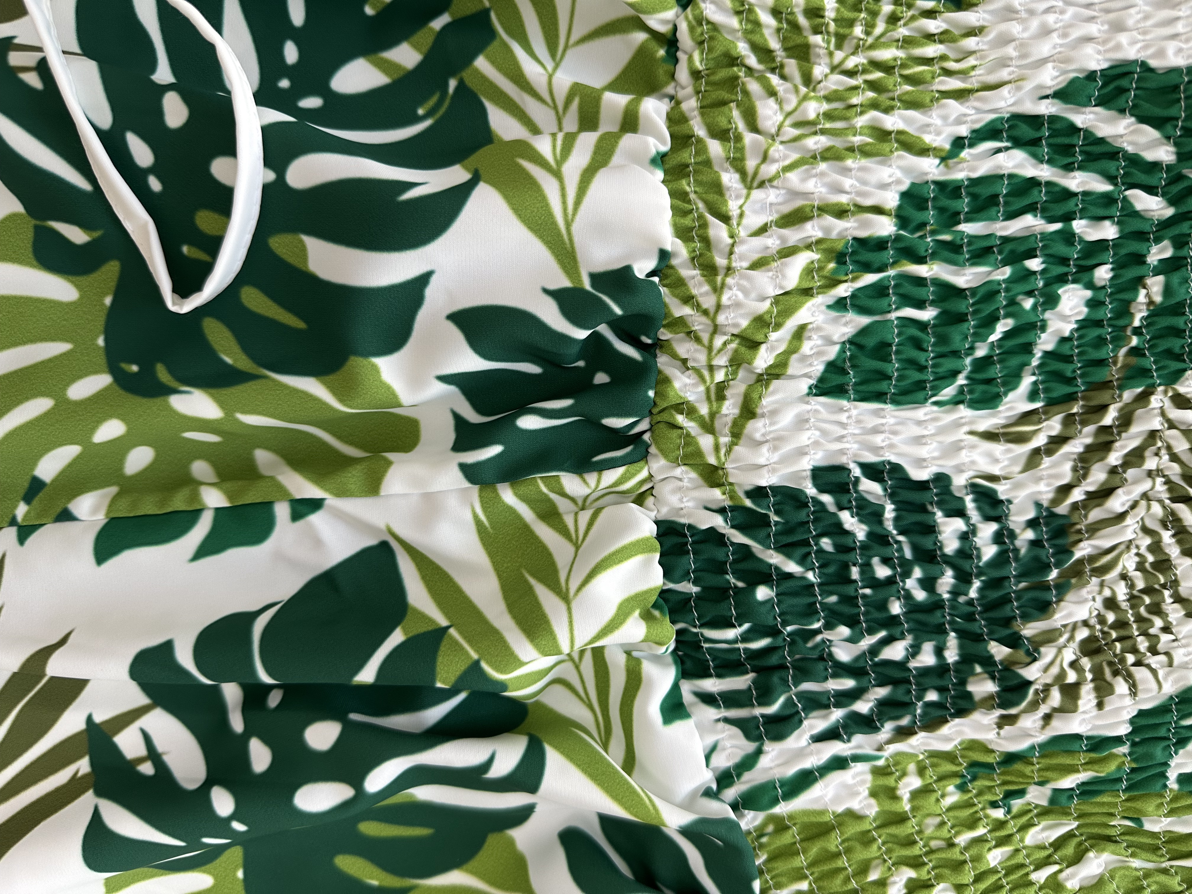 【Product Performance Characteristics】The Bandeau Tie Waist Jumpsuit features a strapless bandeau neckline for a sleek look, an adjustable tie waist for a customizable fit, and is made from lightweight, breathable fabric for comfort and ease of movement.