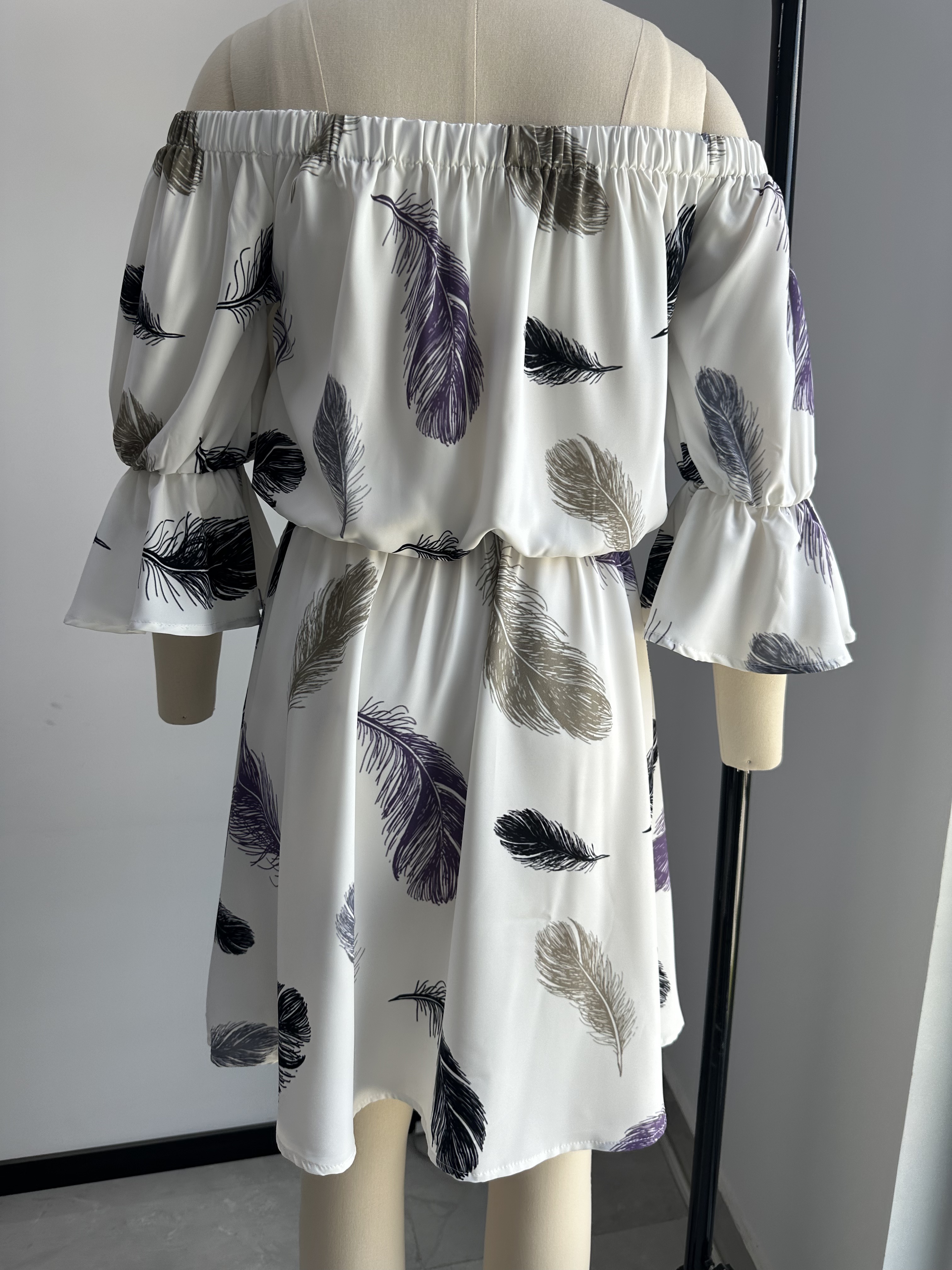 【Accessory Structure】Off Shoulder;Ruffle Sleeve;Elastic Waist;Backless;Casual Dress;Summer Dress.