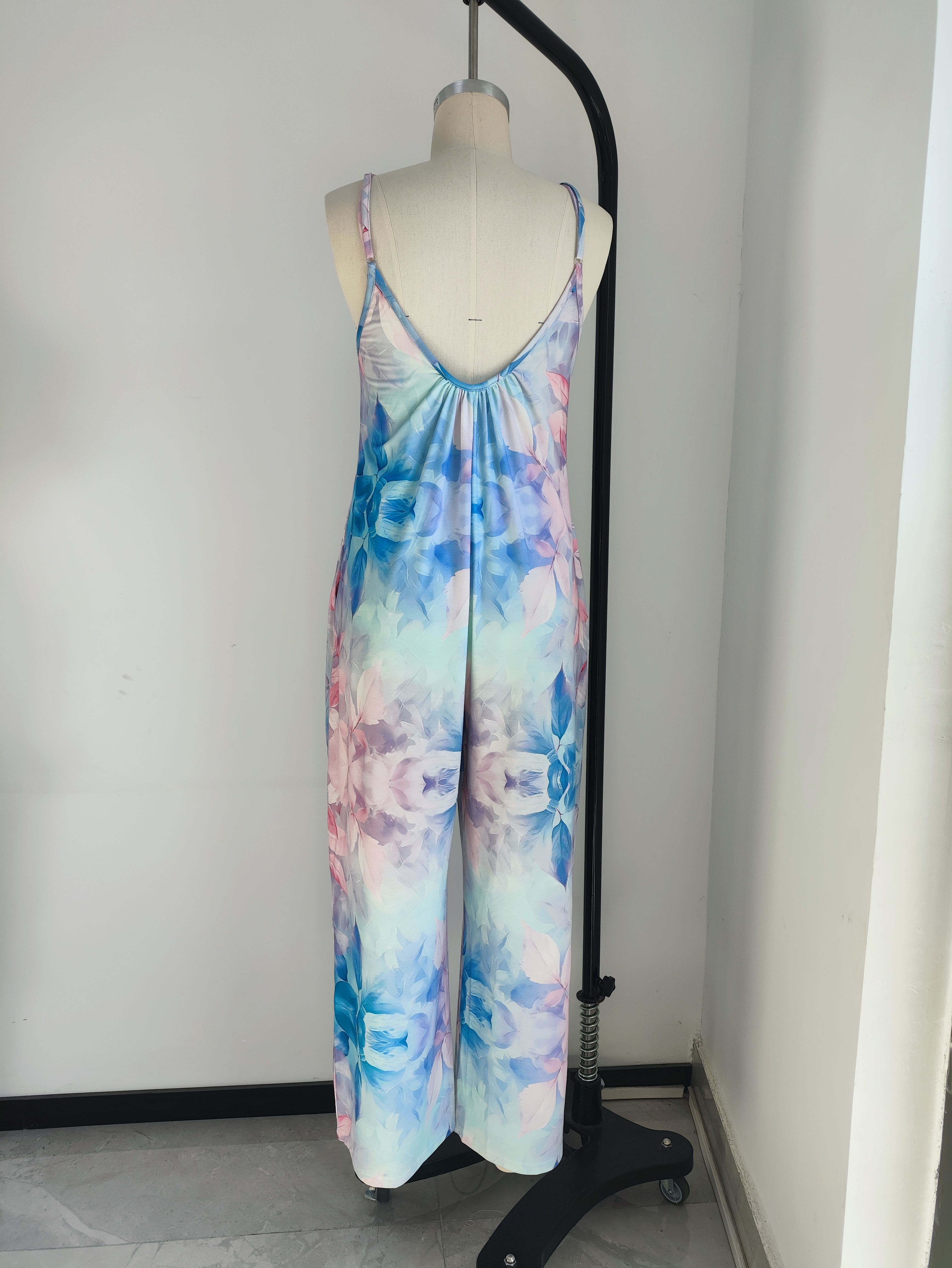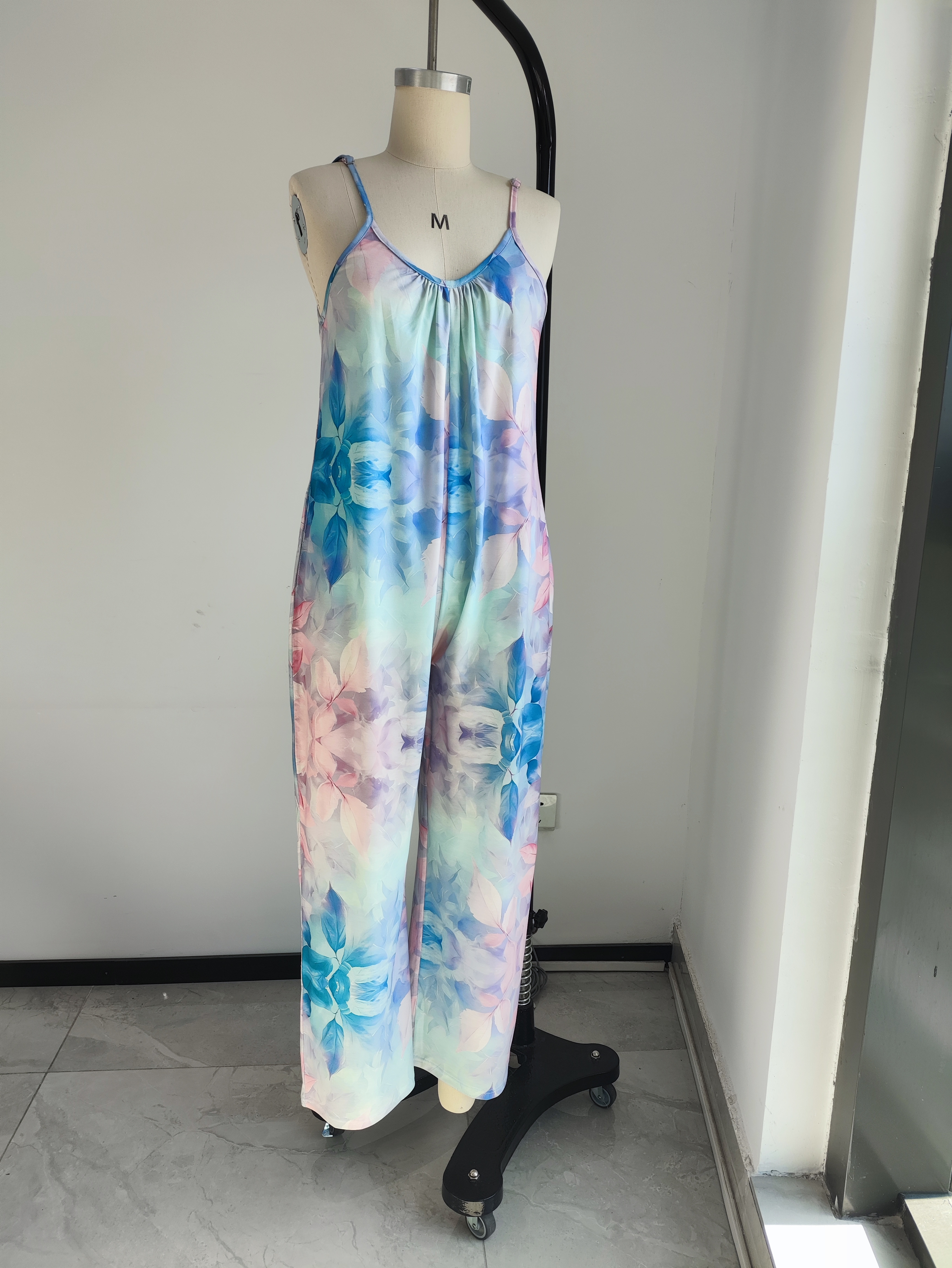 【Accessory Structure】Adjustable spaghetti strap jumpsuit, sleeveless jumpsuit for women,two side pockets,wide leg,loose fit, casual style.