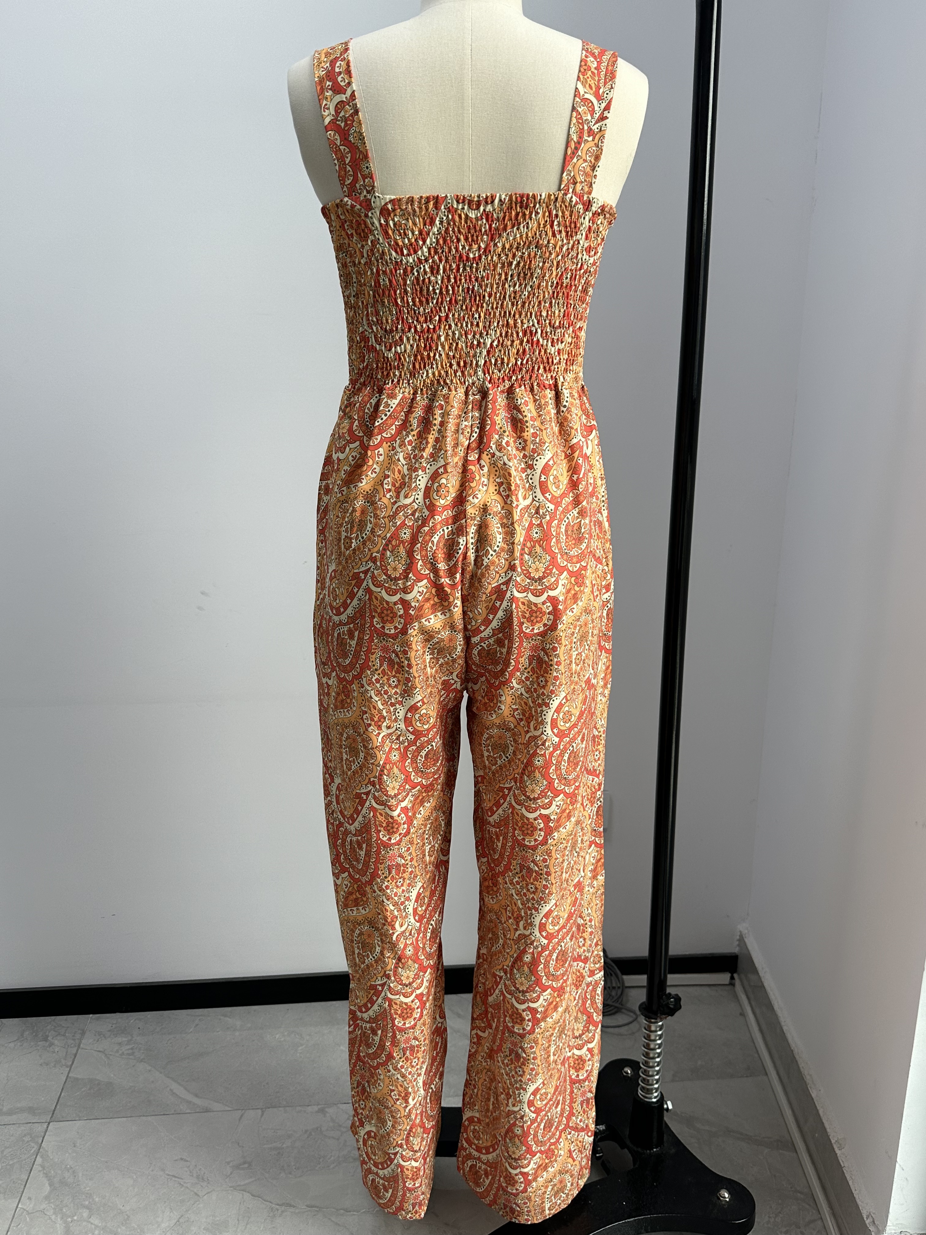【Accessory Structure】One Piece Sleeveless Jumpsuits, Square Neck, Wide Leg Pants, Two Side Pockets, Fashion Jumpsuit, Stretchable Long Pants Jumpsuit, Loose Fit, Casual Style.