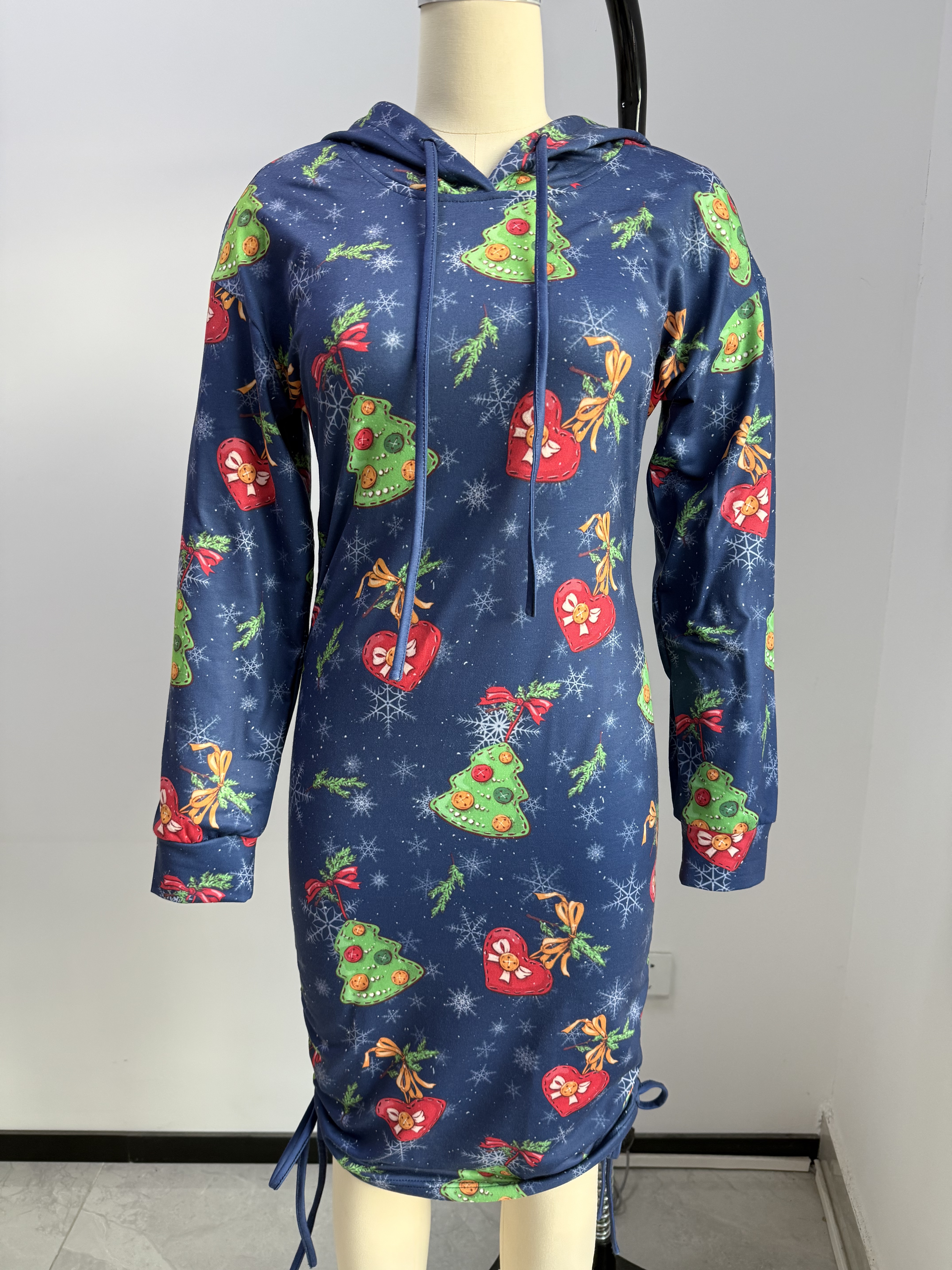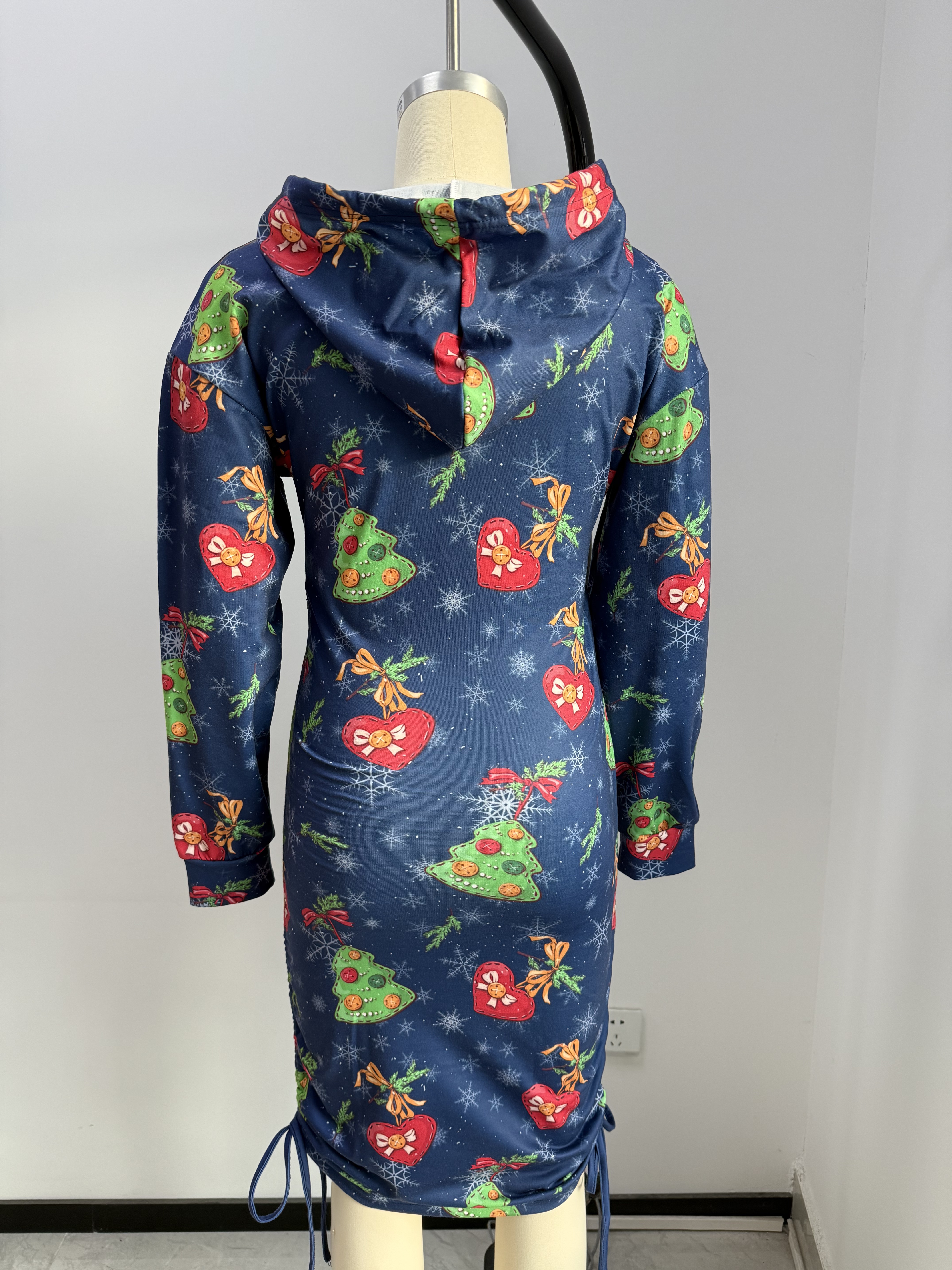 【Accessory Structure】The Long Sleeve Hooded Drawstring Sweatshirt Dress includes a cozy hood with adjustable drawstrings, and ribbed cuffs for added warmth and convenience.