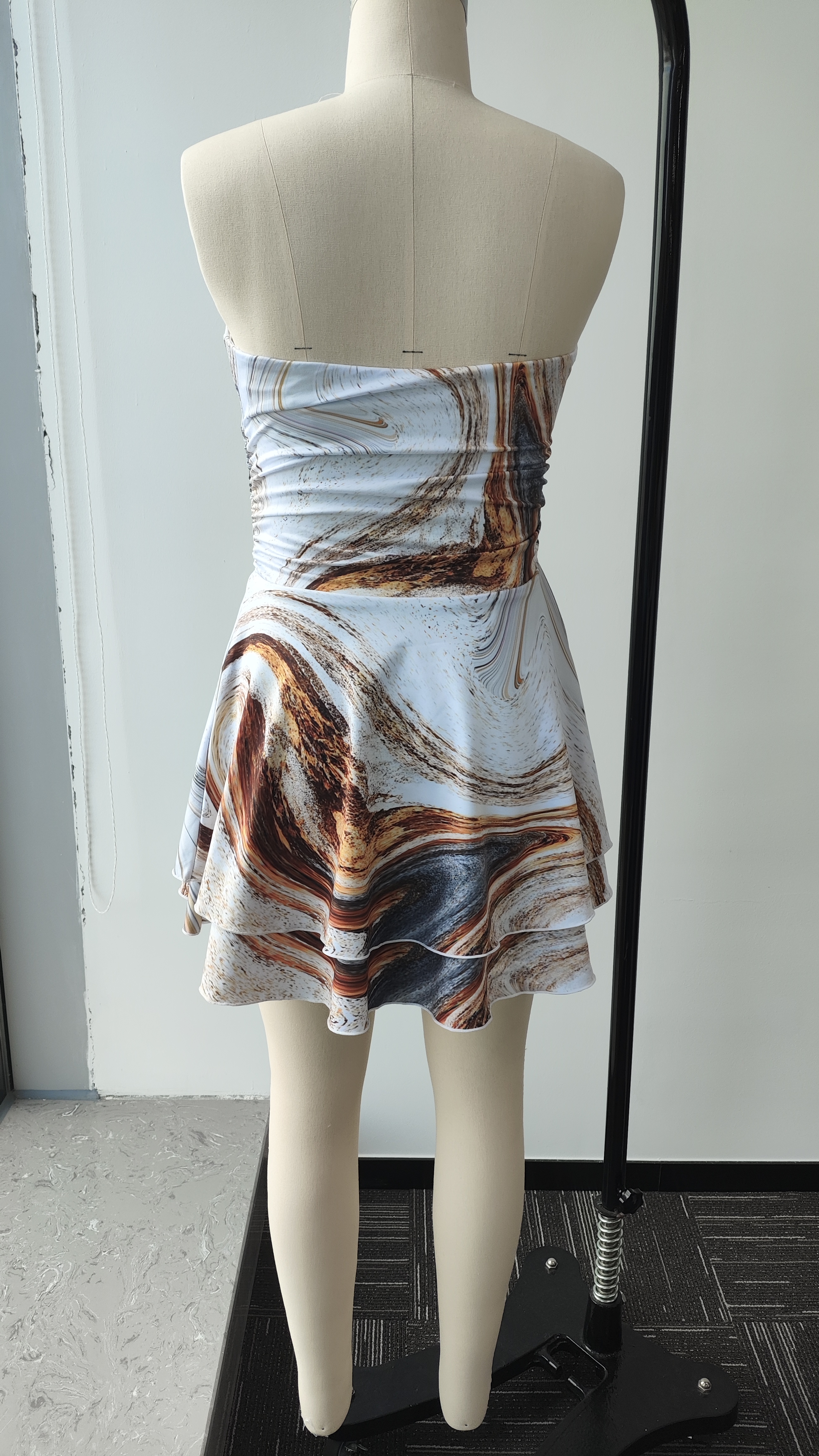 【Accessory Structure】Tube top strapless mini dress, off the shoulder, sleeveless, high waist with a ruched design, a-line, double layered, tiered ruffle hem, above knee length, summer dresses for women.