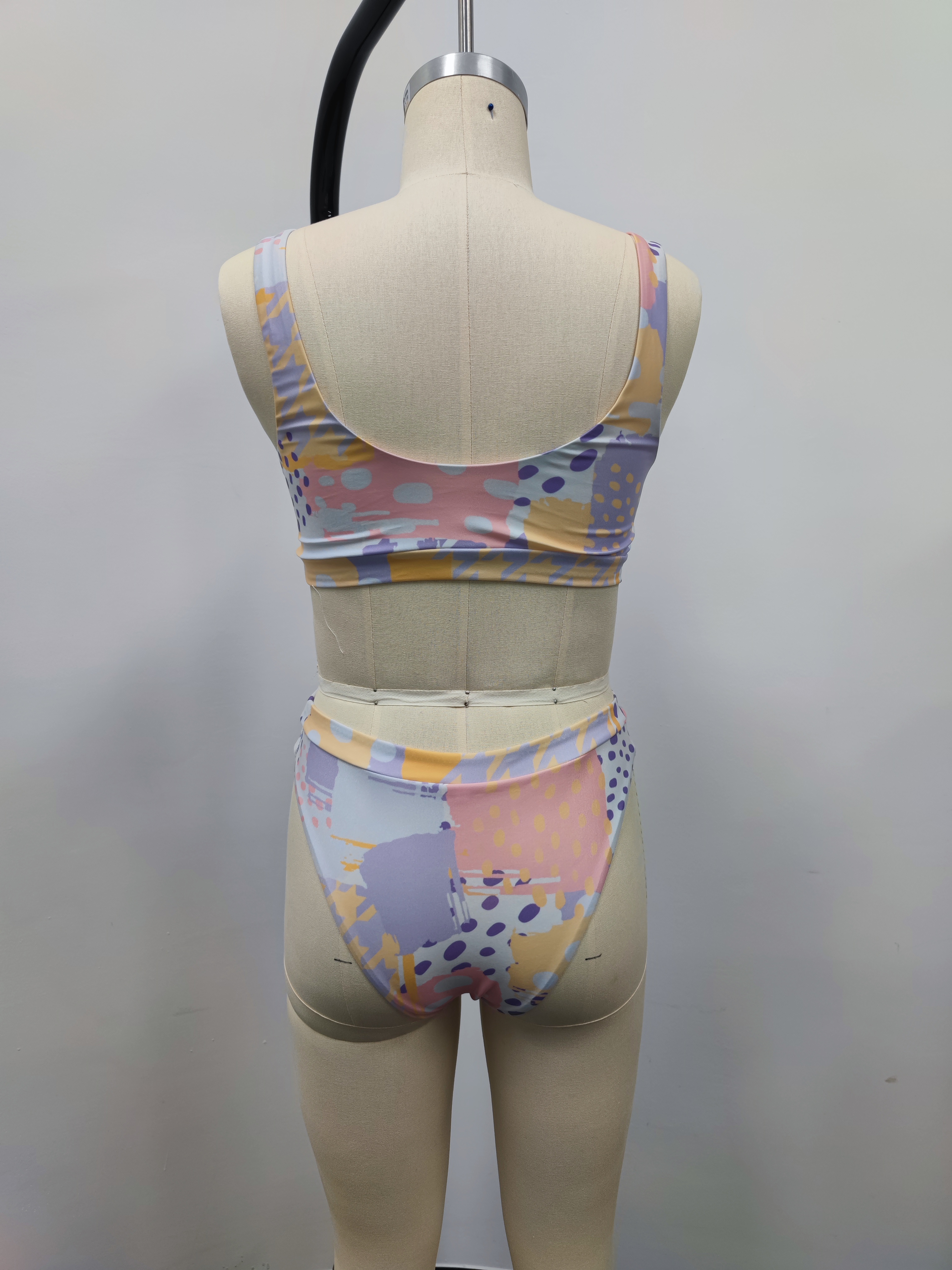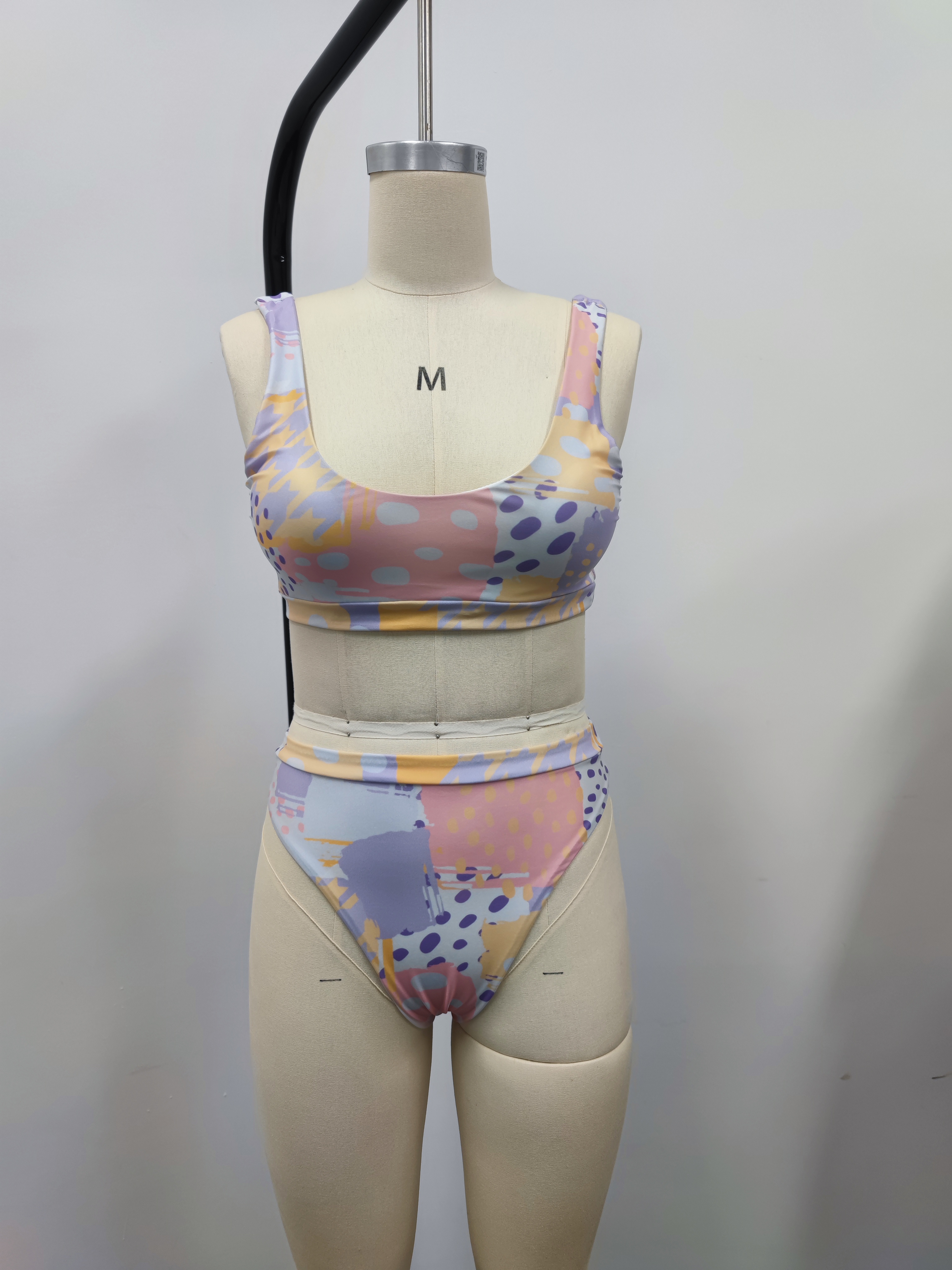 【Product Performance Characteristics】Get ready to turn heads with this High Waist Two-Piece Bikini Set, designed for confident, active women.The sporty top offers medium support with a scoop neckline, while the high-waisted bottom smooths and flatters your tummy.Made from breathable, quick-drying fabric, it's ideal for swimming, sunbathing, or just lounging poolside.Whether you're headed to the beach, a tropical resort, or a summer party – this bikini is your go-to choice for comfort and style.