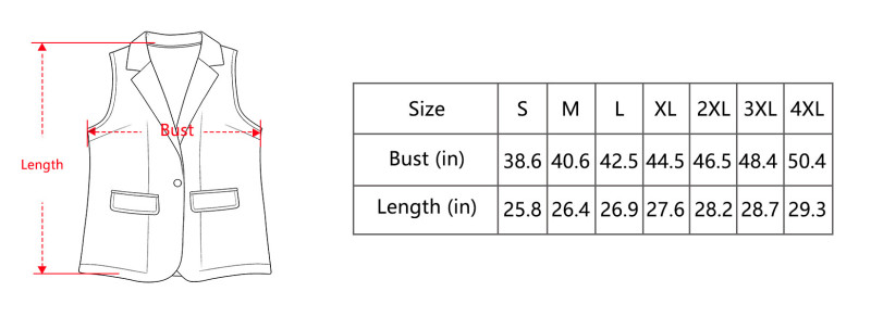 【Product Performance Characteristics】Made from a smooth, lightweight woven fabric, this sleeveless blazer vest offers excellent breathability and comfort. The tailored fit enhances the silhouette without restricting movement, making it perfect for layering. Its wrinkle-resistant material holds shape well throughout the day, while the structured lapels and flap pockets add a touch of polished sophistication. Ideal for both casual and office wear.