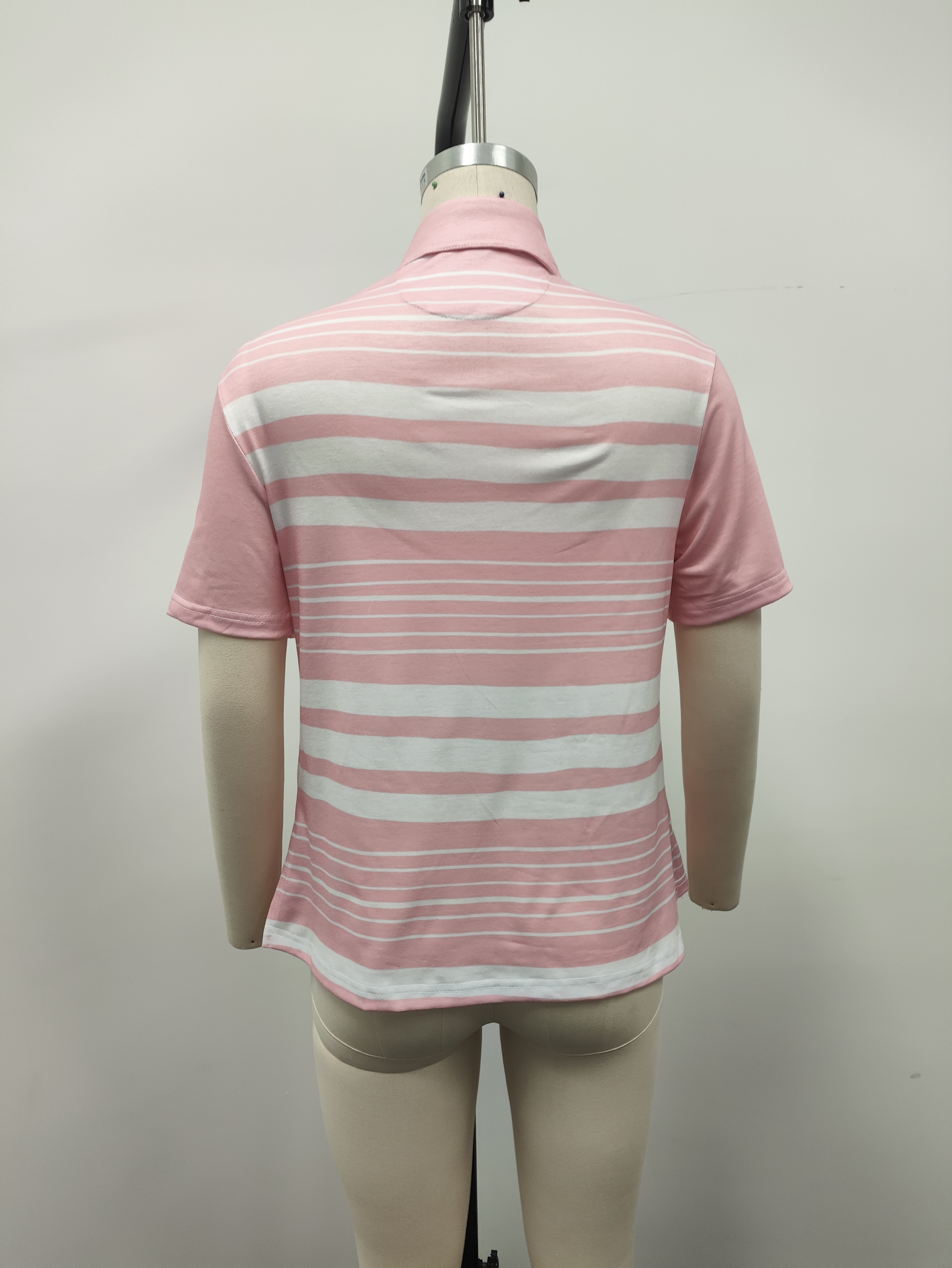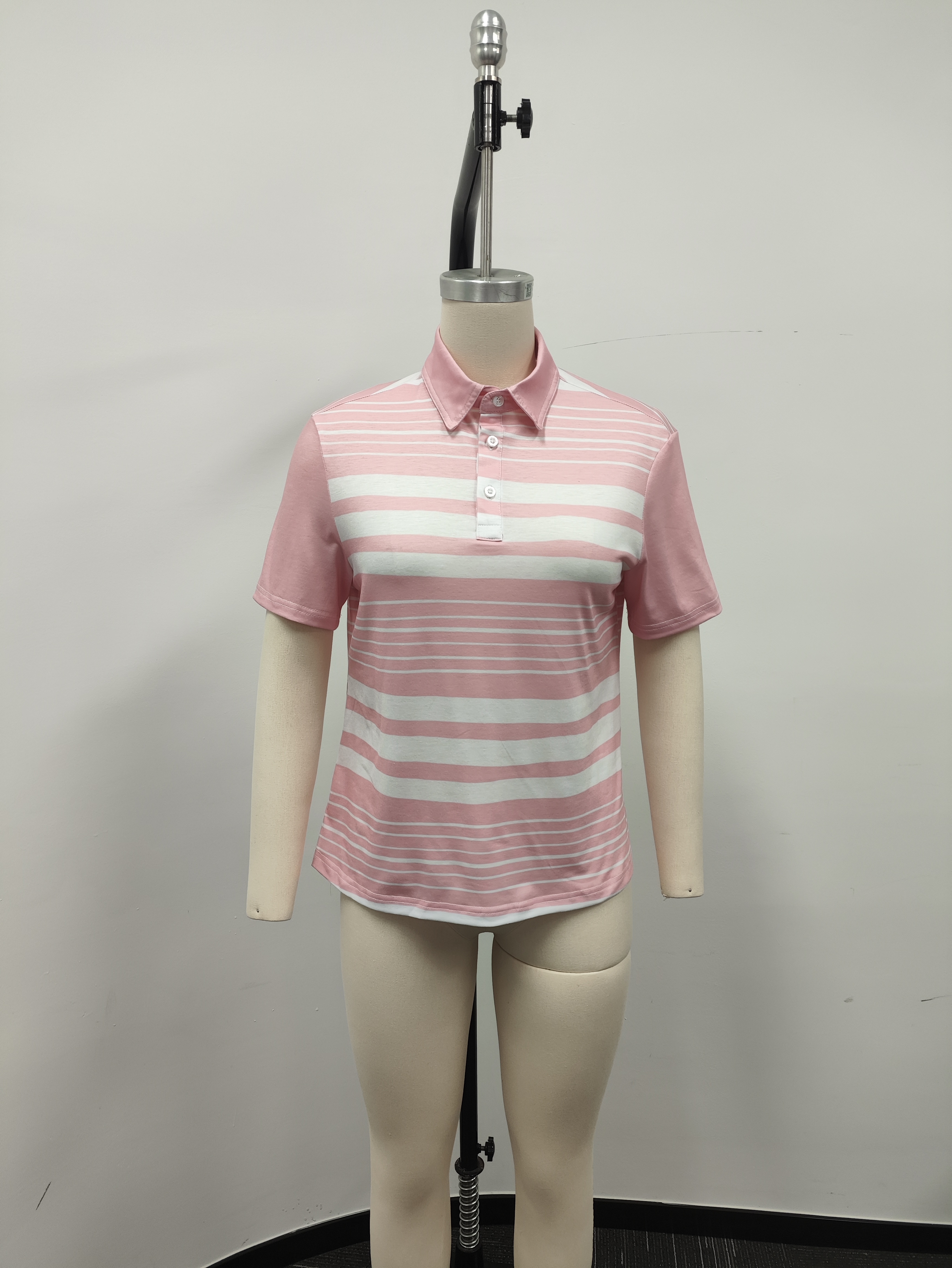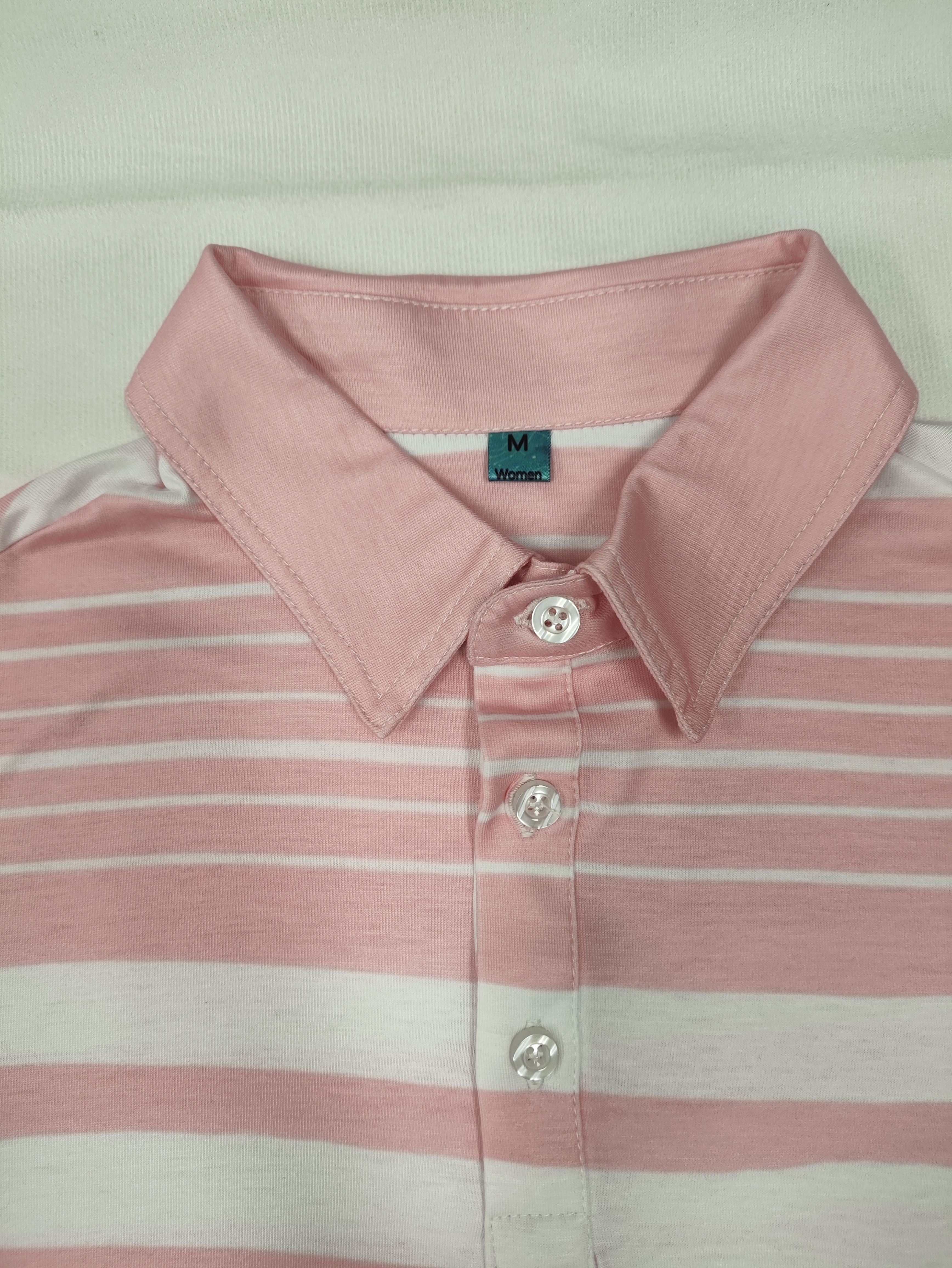 【Accessory Structure】 This women’s polo shirt is accented with a classic three-button placket and welt collar.Detailed with double-needle sleeve and bottom hems for a clean-cut finish.