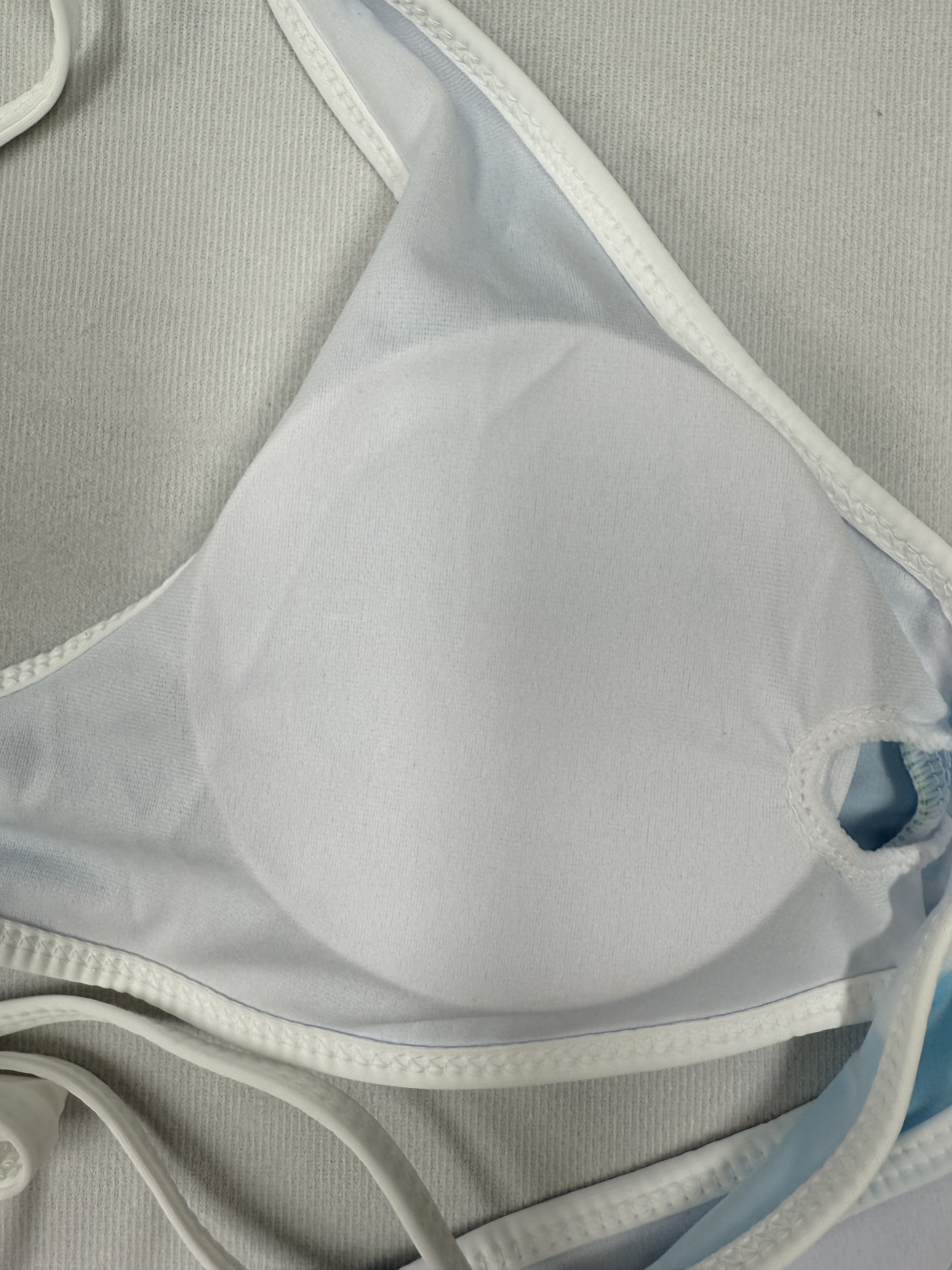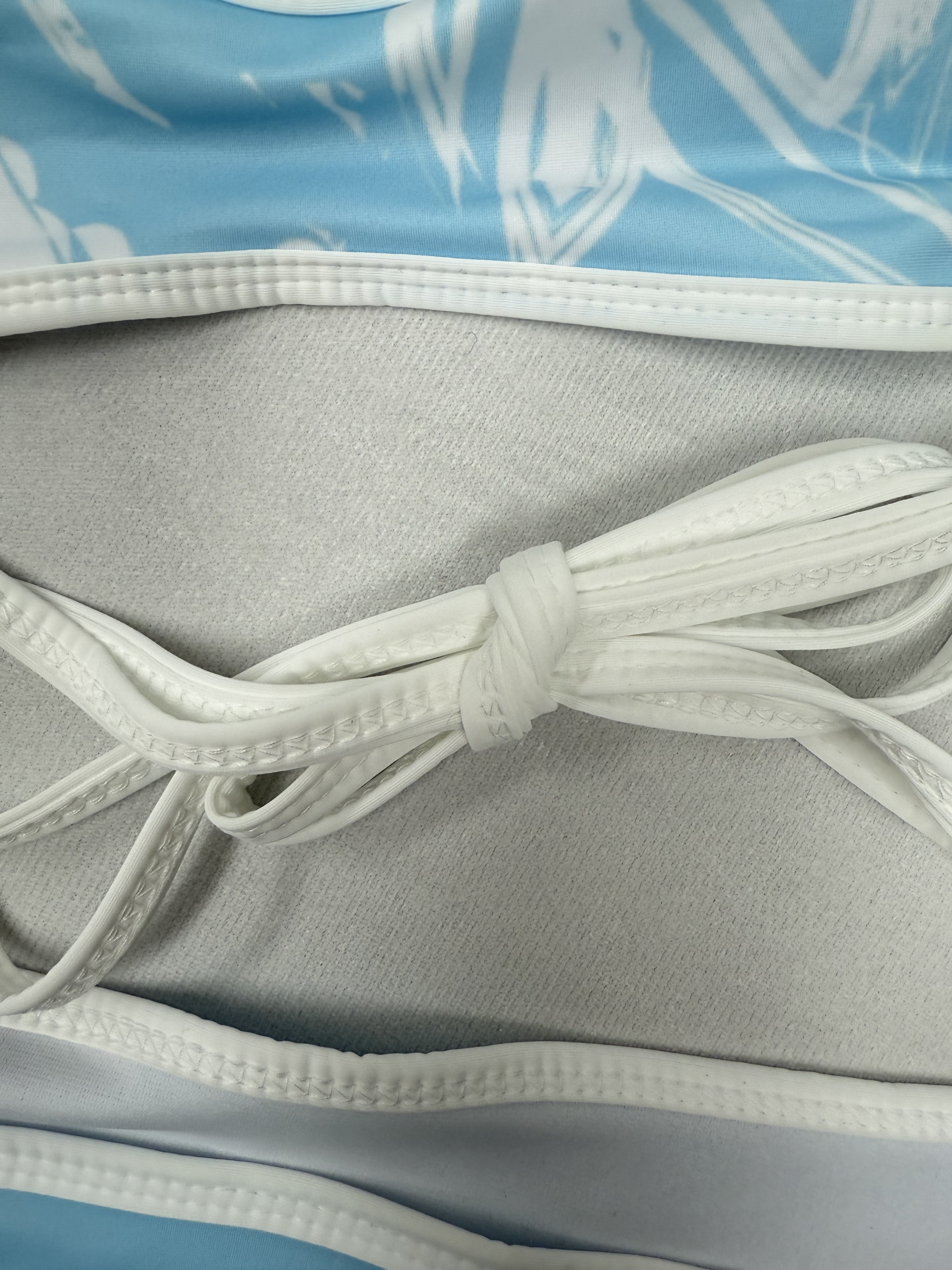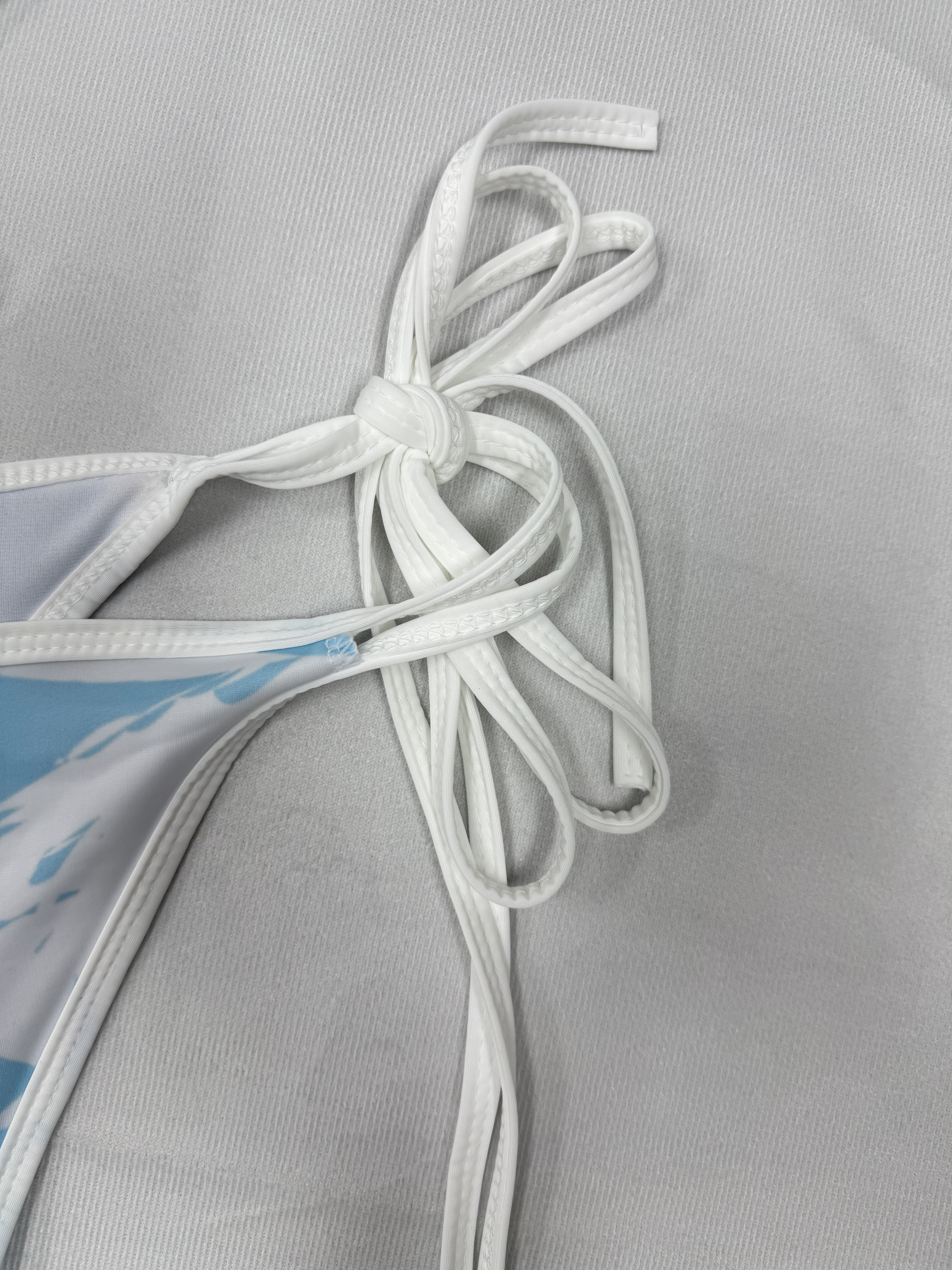 【Accessory Structure】Wrapped Bikini Top with Lace-Up at Back. High Waisted and Printed Bikini Bottom. Two-piece set with soft chest pads.