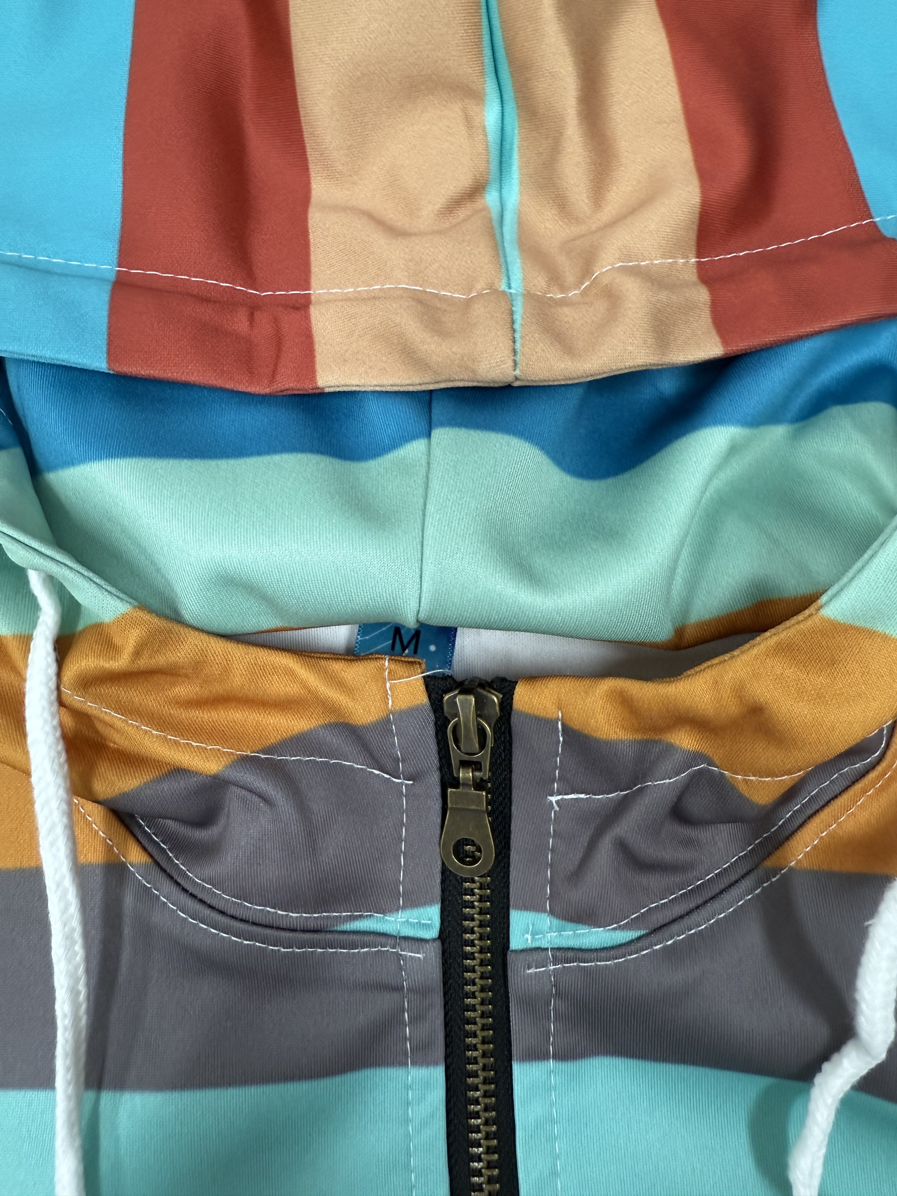 【Accessory Structure】Front full-length zipper closure, adjustable drawstring hood, long sleeves with ribbed cuffs, and two side pockets.