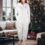 Custom Personalized Women's Plush Hooded Zipper Long Sleeve One Piece Pajamas |