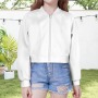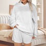 Custom Individualized Women's Long Sleeve Button Collar Sweatshirt & Elastic Waist Pocket Shorts Set |